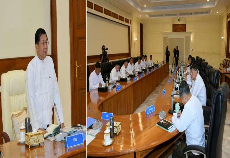 ပြည်ထောင်စုအစိုးရအဖွဲ့အစည်းအဝေး အမှတ်စဉ် (၆/၂၀၂၃) ကို ယနေ့နံနက်ပိုင်းတွင် နေပြည်တော်ရှိ နိုင်ငံတော်စီမံအုပ်ချုပ်ရေးကောင်စီဥက္ကဋ္ဌရုံး အစည်းအဝေးခန်းမ၌ကျင်းပရာ နိုင်ငံတော်စီမံအုပ်ချုပ်ရေးကောင်စီဥက္ကဋ္ဌ နိုင်ငံတော်ဝန်ကြီးချုပ် ဗိုလ်ချုပ်မှူးကြီး မင်းအောင်လှိုင် တက်ရောက်အမှာစကားပြောကြားသည်။