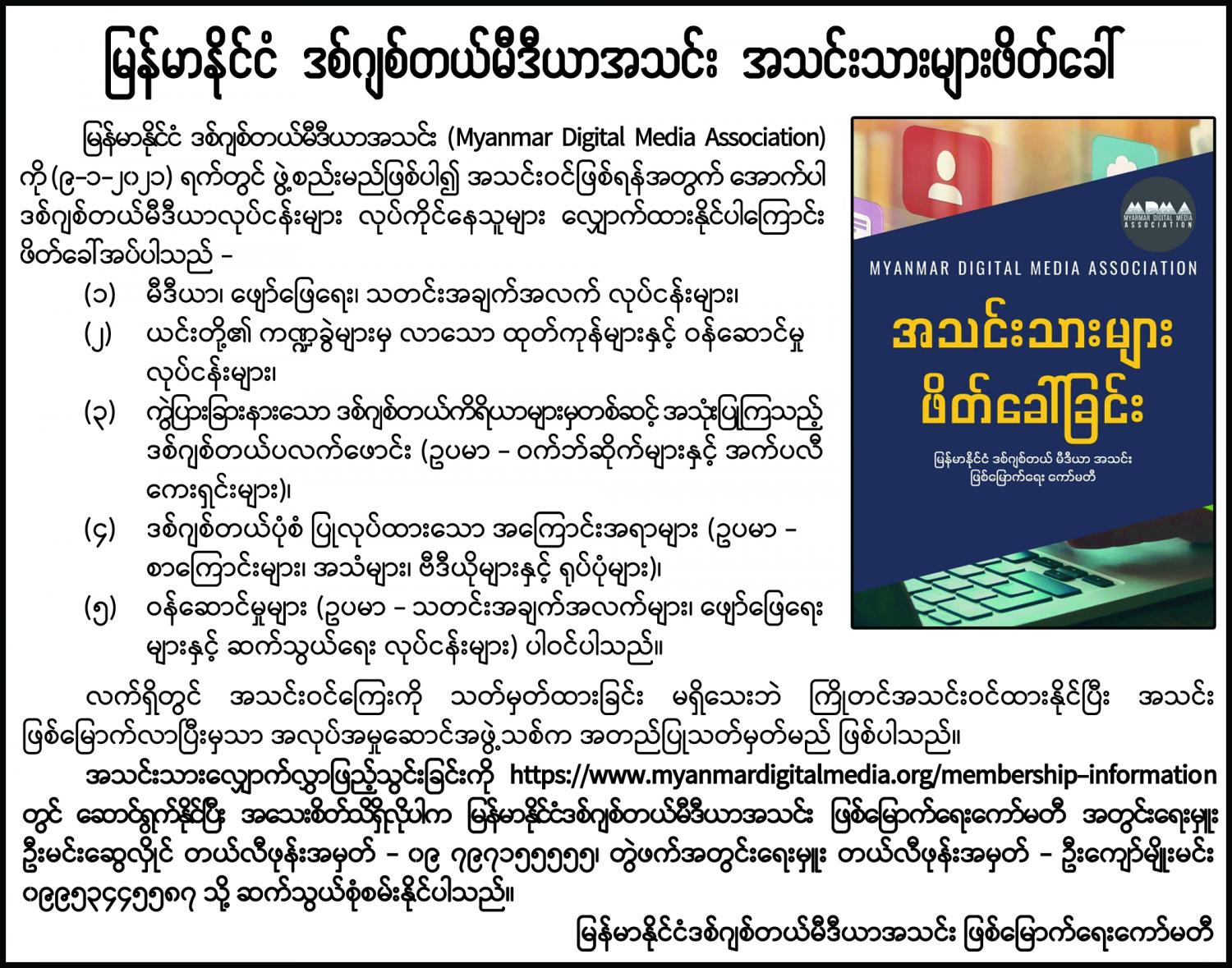 မြန်မာနိုင်ငံ ဒစ်ဂျစ်တယ်မီဒီယာအသင်း အသင်းသားများ ဖိတ်ခေါ်