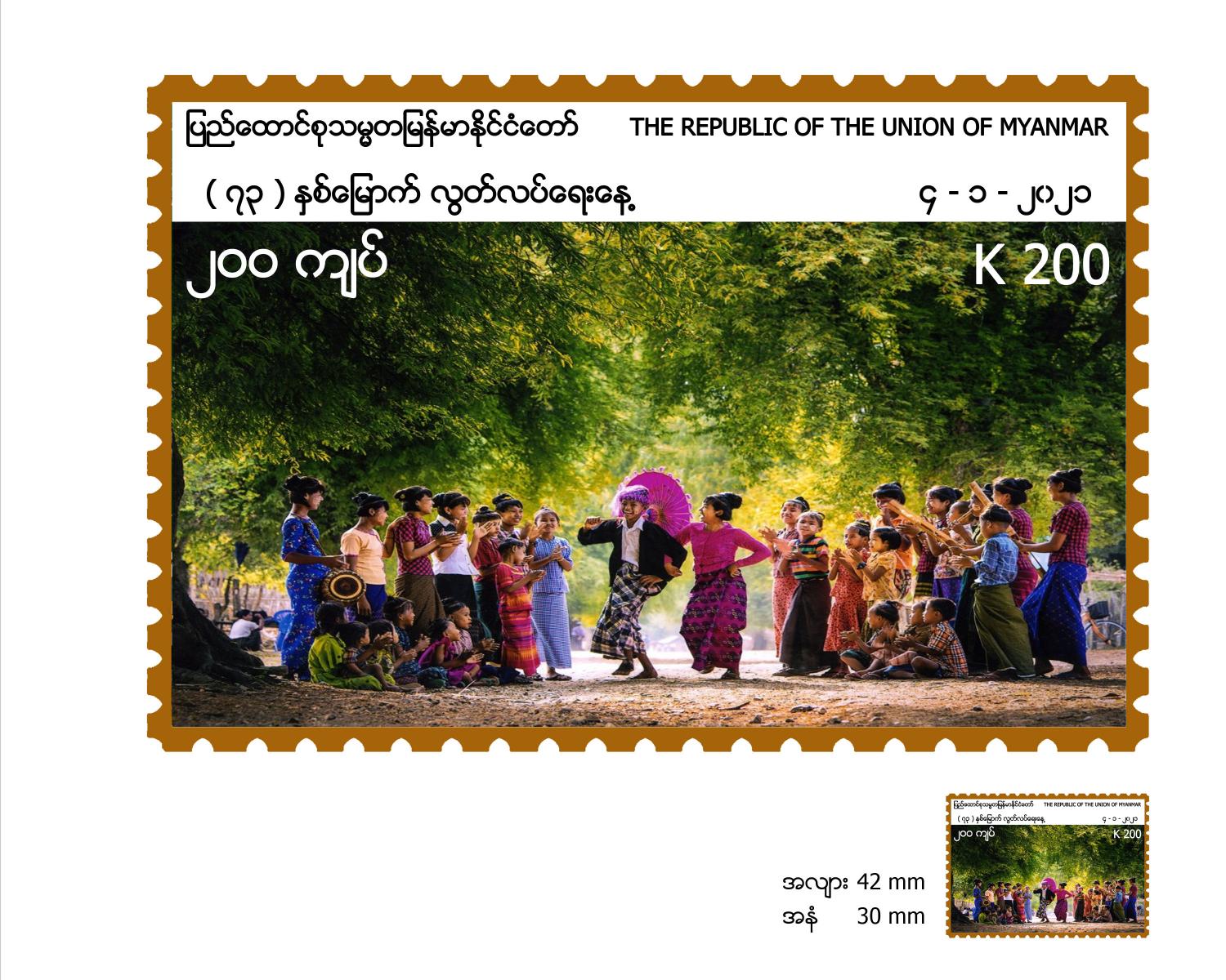 ပို့ဆောင်ရေးနှင့် ဆက်သွယ်ရေးဝန်ကြီးဌာန၊ မြန်မာ့စာတိုက်လုပ်ငန်းမှ (၇၃)နှစ်မြောက်၊ လွတ်လပ်ရေးနေ့ အထိမ်းအမှတ် အထူးထုတ် စာပို့တံဆိပ်ခေါင်းသစ်(၂၀၀ ကျပ်တန်) (၃)မျိုးကို ၂၀၂၁ ခုနှစ်၊ ဇန်နဝါရီ (၄)ရက်၊ မြန်မာသက္ကရာဇ် ၁၃၈၂ ခုနှစ်၊ နတ်တော် လပြည့်ကျော် (၆)ရက် (တနင်္လာနေ့)၊ နံနက်(၉)နာရီခွဲမှစတင်၍ နေပြည်တော်ဗဟို စာတိုက်ကြီး၊ ရန်ကုန်စာတိုက်ကြီး၊ မန္တလေးစာတိုက်ကြီးတို့နှင့် တိုင်းဒေသကြီး/ ပြည်နယ်များရှိ စာတိုက် များတွင် ရောင်းချပေးသွား မည် ဖြစ်သည်။