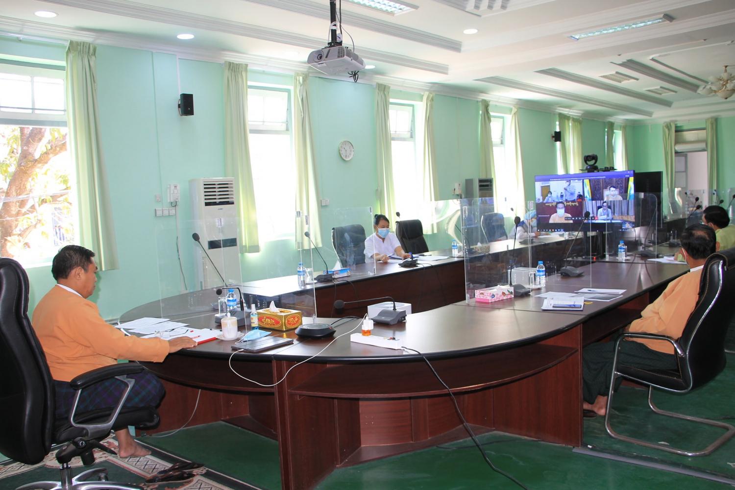 နေပြည်တော်၊ ရုံးအမှတ်(၂၆)၊ စီမံကိန်း၊ ဘဏ္ဍာရေးနှင့် စက်မှုဝန်ကြီးဌာန၊ အစည်းအဝေးခန်းမ၌ ဇန်နဝါရီ ၅ရက်၊ နံနက် (၁၀)နာရီက ကျင်းပပြုလုပ်သည့် ကိုဗစ်−၁၉ ရောဂါကာကွယ်ဆေး ဝယ်ယူနိုင်ရေးနှင့် မြန်မာရွှေ့ပြောင်းလုပ်ငန်းများ ပြည်တွင်းအလုပ်အကိုင် အခွင့်အလမ်းရရှိရေး လုပ်ငန်းညှိနှိုင်းအစည်းအဝေးသို့ ပဲခူးတိုင်းဒေသကြီးအစိုးရအဖွဲ့၊ ဝန်ကြီးချုပ် ဦးဝင်းသိန်းမှ Online Meeting စနစ်ဖြင့် တက်ရောက် ခဲ့သည်။