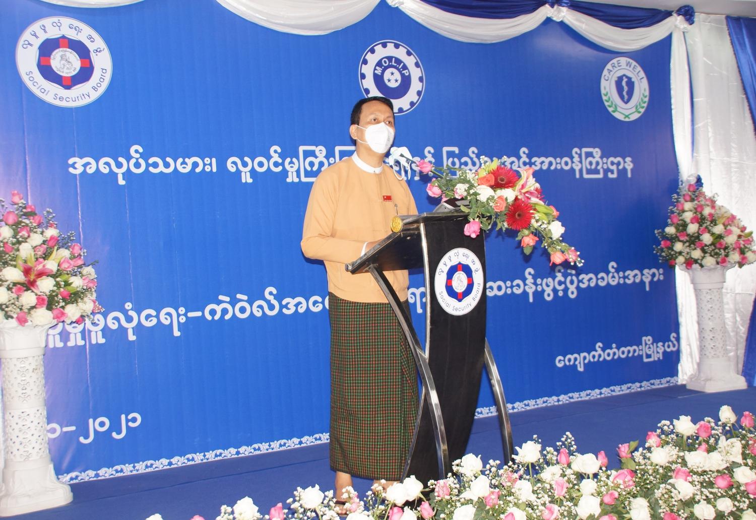 အလုပ်သမား၊ လူဝင်မှုကြီးကြပ်ရေးနှင့်ပြည်သူ့အင်အားဝန်ကြီးဌာန၊ လူမှုဖူလုံရေးအဖွဲ့၊ လူမှုဖူလုံရေး-ကဲဝဲလ် အထွေထွေရောဂါကု ဆေးခန်း ကို ရန်ကုန်မြို့၊ ကျောက်တံတားမြို့နယ် အမှတ်(၃၂၇/၃၆၇) မဟာဗန္ဓုလ ပန်းခြံလမ်း၊ အထက်ဘက်လောက်ရှိ အဆိုပါ လူမှုဖူလုံရေး-ကဲဝဲလ် အထွေထွေ ရောဂါကု ဆေးခန်း အဆောက်အဦး၌ ယနေ့ နံနက် ၈ နာရီက ကျင်းပရာ၊ ရန်ကုန်တိုင်းဒေသကြီး အစိုးရအဖွဲ့ ဝန်ကြီးချုပ် ဦးဖြိုးမင်းသိန်း တက်ရောက်ခဲ့သည်။