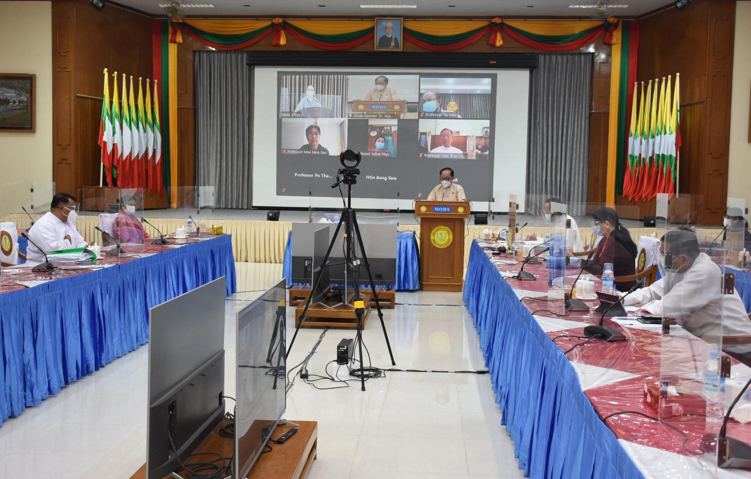 (၆၇) ကြိမ်မြောက် မြန်မာနိုင်ငံဆရာဝန်အသင်းညီလာခံ အကြို "COVID-19 နှင့် ပတ်သက် သော ပြည်သူ့ကျန်းမာကာကွယ်ရေးဆိုင်ရာများဆွေးနွေးပွဲ ("67th Myanmar Medical Conference Pre-Conference Symposium on COVID-19)" ကို ယနေ့ နံနက်ပိုင်းတွင် ကျန်းမာရေးနှင့်အားကစားဝန်ကြီးဌာန ၌ ဗီဒီယိုကွန်ဖရင့်စနစ်ဖြင့် ကျင်းပသည်။