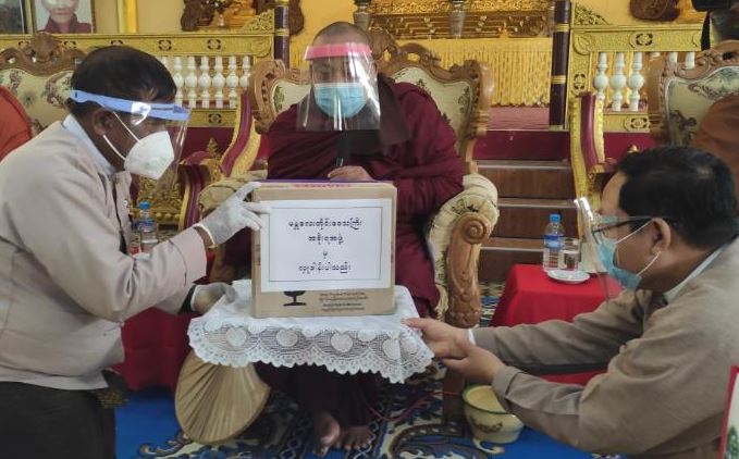 မန္တလေးခရိုင်တွင် ဘုန်းတော်ကြီးကျောင်း(၃၀၂၅)ကျောင်းနှင့် သီလရှင်ကျောင်း(၂၄၀)ကျောင်းရှိပြီး ရဟန်း(၂၂၅၈၁)ပါး၊ သာမဏေ(၁၇၅၅၂)ပါး၊ သီလရှင် (၅၀၈၉)ပါး၊ စုစုပေါင်း(၄၅၂၂၂)ပါး ရှိရာ တစ်ဖာလျင် ခေါက်ဆွဲခြောက်ထုပ်(၃၀)ပါရှိသည့် ခေါက်ဆွဲခြောက် ထုပ်များကို(၂)ပါးလျင် တစ်ဖာနှုန်းဖြင့် ခေါက်ဆွဲခြောက်ထုပ်(၂၂၆၁၁)ဖာတို့အား ကိုဗစ်ကာလအတွင်း ဆွမ်းကိစ္စအထောက်အပံ့ဖြစ်စေရေးအတွက် လှူဒါန်းခြင်းဖြစ်ကြောင်း သိရသည်။