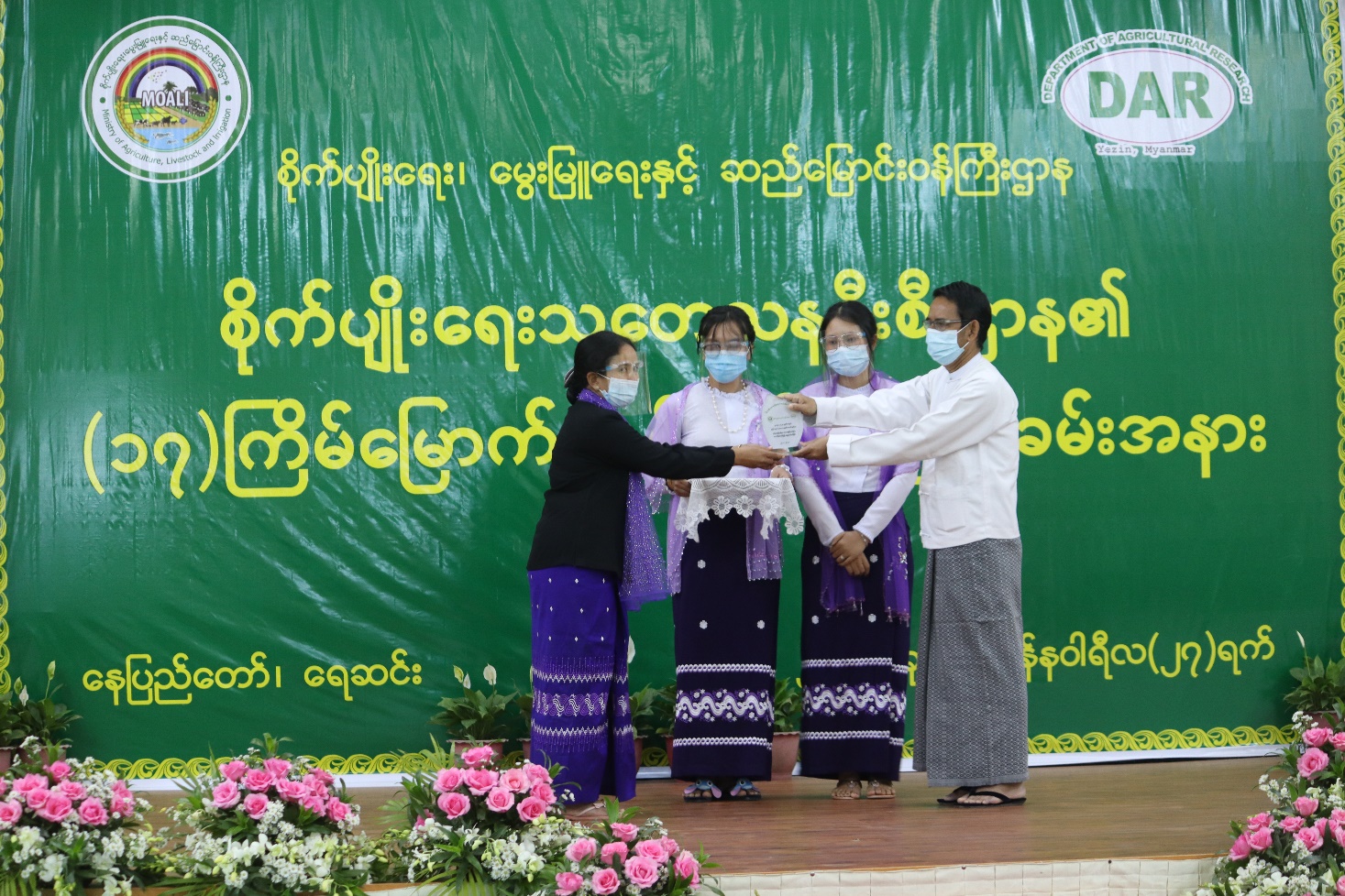 စိုက်ပျိုးရေးသုတေသနဦးစီးဌာန၏ (၁၇)နှစ်ပြည့် အထိမ်းအမှတ် အခမ်းအနားကို ယနေ့ နံနက်ပိုင်းက နေပြည်တော် ရေဆင်းစိုက်ပျိုးရေး သုတေသနဦးစီးဌာန နဝရတ်ခန်းမတွင် ကျင်းပရာ ပြည်ထောင်စုဝန်ကြီး ဒေါက်တာအောင်သူ တက်ရောက်မိန့်ခွန်းပြောကြားပြီး ဂုဏ်ပြုဆုများ ပေးအပ် ချီးမြှင့်သည်။