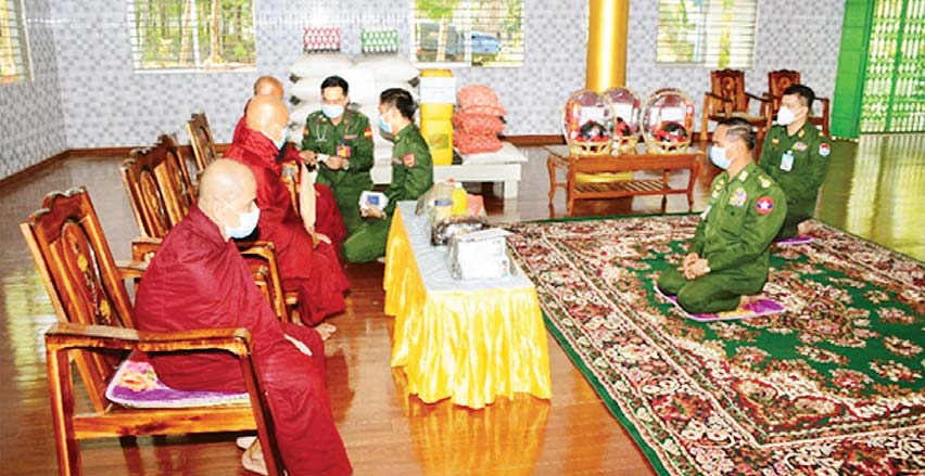ထို့ပြင် နယ်မြေခံတပ်မတော်ဆေးရုံမှ ဆေးကုသရေးအဖွဲ့က သံဃာတော်များအား ကျန်းမာရေး စစ်ဆေးပေးခြင်း၊ အပူချိန်တိုင်းတာပေးခြင်းနှင့် လိုအပ်သည့် ကျန်းမာရေးစောင့်ရှောက်မှုလုပ်ငန်း များ ဆောင်ရွက်ပေးခဲ့ကြောင်း တပ်မတော်ကာကွယ်ရေးဦးစီးချုပ်ရုံး သတင်းထုတ်ပြန်ချက်အရ သိရသည်။
