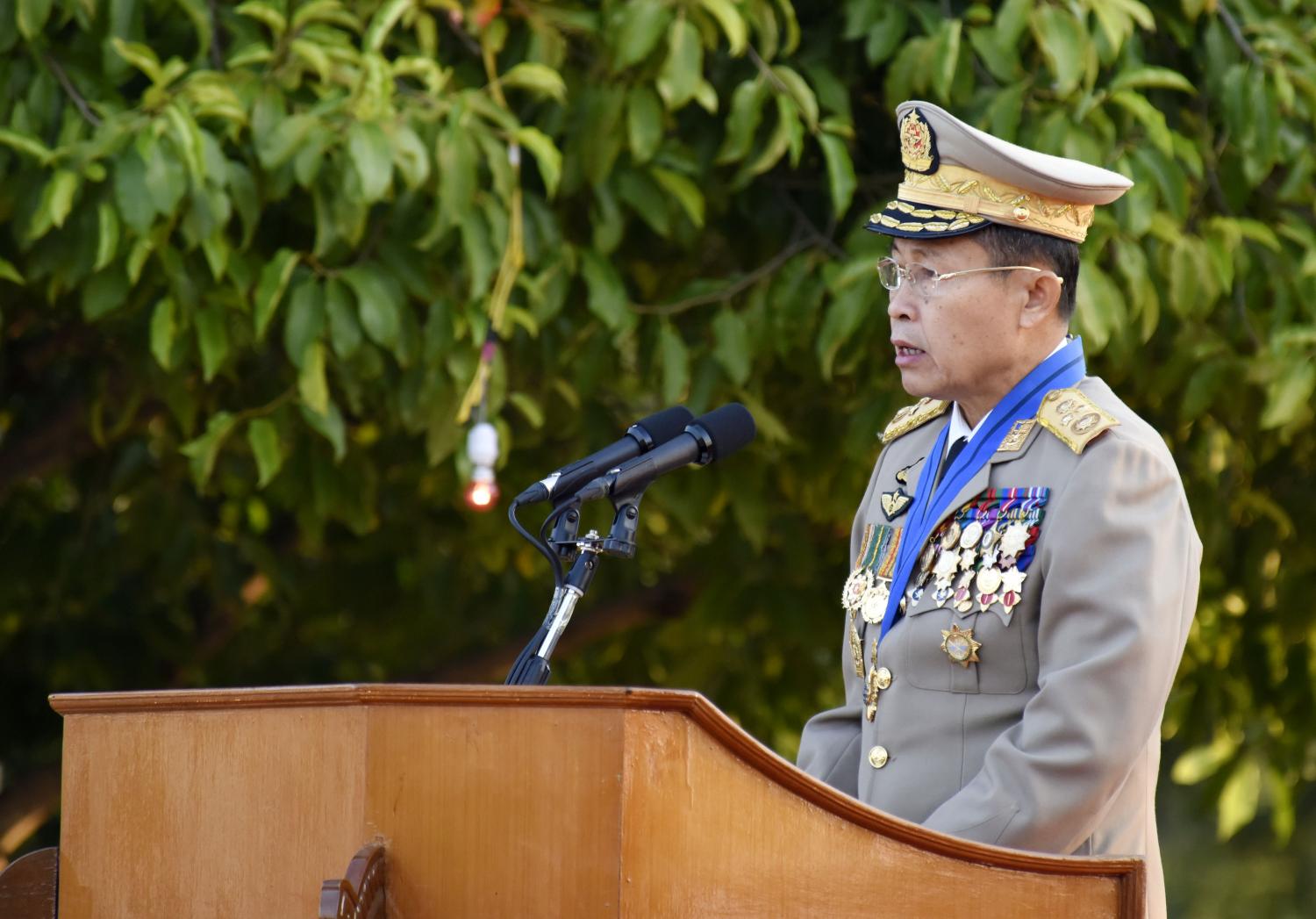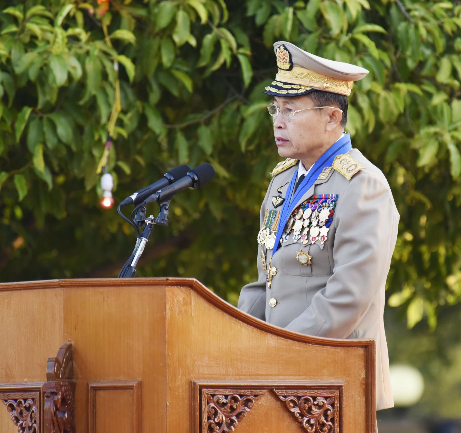 ၂၀၂၁ ခုနှစ်၊ (၇၄) နှစ်မြောက် ပြည်ထောင်စုနေ့ နိုင်ငံတော်အလံတင် အခမ်းအနားနှင့် နိုင်ငံတော် အလံ အလေးပြုပွဲ အခမ်းအနားကို ယနေ့နံနက်ပိုင်းတွင် နေပြည်တော်ရှိ မြို့တော် ခန်းမ ဥပစာ ရင်ပြင် ၌ကျင်းပရာ နိုင်ငံတော်စီမံအုပ်ချုပ်ရေးကောင်စီ ဒုတိယဥက္ကဋ္ဌ ၊ ဒုတိယ တပ်မတော် ကာကွယ်ရေး ဦးစီးချုပ်၊ ကာကွယ်ရေးဦးစီးချုပ် (ကြည်း) ဒုတိယ ဗိုလ်ချုပ်မှူးကြီး စိုးဝင်း တက်ရောက်၍ နိုင်ငံတော်စီမံ အုပ်ချုပ်ရေးကောင်စီဥက္ကဋ္ဌ တပ်မတော်ကာကွယ်ရေး ဦးစီးချုပ် ဗိုလ်ချုပ်မှူးကြီး မင်းအောင်လှိုင် ထံမှ ပေးပို့သော ပြည်ထောင်စုနေ့ သဝဏ်လွှာကို ဖတ်ကြားသည်။