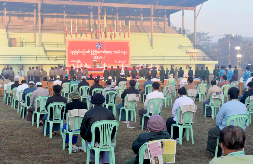 ၂၀၂၁ ခုနှစ်၊ ဖေဖော်ဝါရီ ၁၂ ရက်တွင် ကျရောက်သည့် (၇၄)နှစ်မြောက် ပြည်ထောင်စုနေ့ နိုင်ငံတော် အလံအလေးပြုခြင်းနှင့် သဝဏ်လွှာဖတ်ကြားခြင်း အခမ်းအနားကို ကျန်းမာရေးနှင့် အားကစား ဝန်ကြီးဌာန၏ ကိုဗစ်-၁၉ ရောဂါ ကာကွယ်ရေးလမ်းညွှန်ချက်များနှင့်အညီ ရခိုင်ပြည်နယ်၊ စစ်တွေမြို့ရှိ  ဓညဝတီအားကစားကွင်း၌ ဖေဖော်ဝါရီ ၁၂ ရက် နံနက် ၇ နာရီက ကျင်းပသည်။