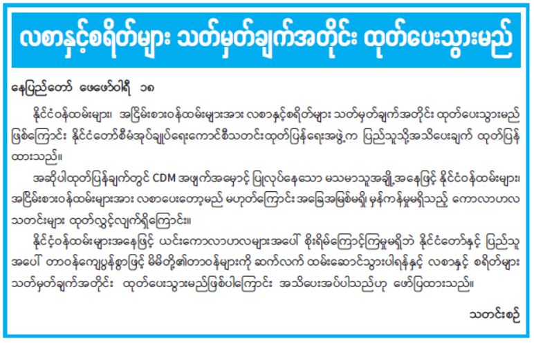 ဝန်ကြီးဌာန ကြေညာချက်များ