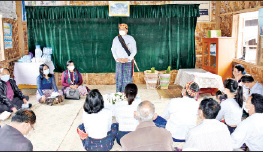 အားပေးစကားပြောကြား ကချင်ပြည်နယ် စီမံအုပ်ချုပ်ရေးကောင်စီဥက္ကဋ္ဌနှင့် ဇနီးတို့အား ကျေးရွာ နေပြည်သူများက ကြိုဆိုနှုတ်ခွန်းဆက် ကြပြီး ကချင်တိုင်းရင်းသားရိုးရာ မဂွန်းရှလစ်နှင့် ရိုးရာ ငွေဓား၊ ငွေလွယ်အိတ်နှင့် ခေါင်းပေါင်းတို့ကို စခန်းတာဝန်ခံ နှင့် တာဝန်ရှိသူတို့က ဂါရဝပြုပေး အပ်ကြပြီး ပြည်နယ်ကောင်စီဥက္ကဋ္ဌက ရင်းရင်းနှီးနှီး အားပေးစကားပြောကြား သည်။
