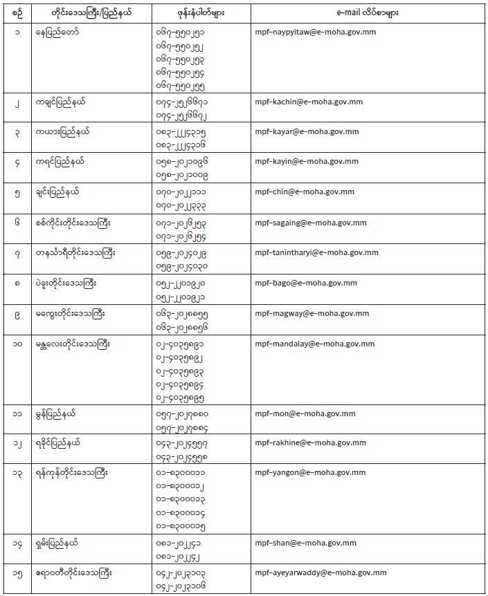 ဆက်သွယ်ရန်ဖုန်းနံပါတ်များနှင့် e-mail လိပ်စာများ