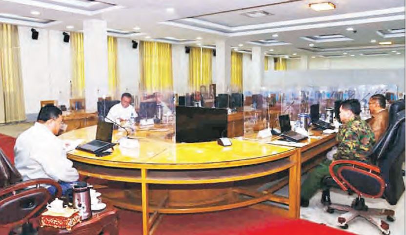 ရှမ်းပြည်နယ် စီမံအုပ်ချုပ်ရေးကောင်စီဥက္ကဋ္ဌ ဒေါက်တာကျော်ထွန်းက ယနေ့တွေ့ဆုံပွဲတွင် နိုင်ငံတော်စီမံအုပ်ချုပ်ရေးကောင်စီ၏ လမ်းညွှန် ချက်များ၊ မှာကြားချက်များကို ပြန်လည်ချပြ ဆွေးနွေးသွားမည်ဖြစ်ကြောင်း၊ လုပ်ငန်းများကို ကဏ္ဍအလိုက် ခွဲခြားထားပြီး မြန်ဆန်စွာ အကောင်အထည်ဖော်ဆောင်ရွက်နိုင်ရန် မှာကြားလိုကြောင်း၊ လုပ်ငန်းများ ကိုအကောင်အထည်ဖော်ဆောင်ရွက်သည့်နေရာတွင် အဓိက စိုက်ပျိုးရေး၊ မွေးမြူရေးကဏ္ဍကို ဦးစွာ အကောင်အထည်ဖော် ဆောင်ရွက်ရန်နှင့် ထုတ်ကုန်များကိုလည်း လျင်မြန်စွာဆောင်ရွက်ပေးရန်၊ မကြာခင် ကျောင်းများ ပြန်လည်ဖွင့်လှစ်နိုင်ရေးအတွက်  ကိုဗစ်-၁၉ ရောဂါ စည်းမျဉ်းစည်းကမ်းနှင့်အညီ ဆောင်ရွက်ပေးကြရန်၊ နိုင်ငံသားစိစစ်ရေးကတ်ပြား များကို တိုင်းရင်းသားလက်ဝယ်ရောက်ရှိနိုင်ရေး အတွက် ဆောင်ရွက်ပေးကြရန်၊ လက်ရှိလုပ်ငန်းများ ကိုလည်း အမြန်ဆုံးအကောင်အထည်ဖော် ဆောင်ရွက်ပေးကြရန်၊ နိုင်ငံ့ဝန်ထမ်းများ ရုံးပြန်လည် တက်နိုင်ရေးအတွက် သက်ဆိုင်ရာ ခရိုင်/မြို့နယ် စီမံအုပ်ချုပ်ရေးကောင်စီအဖွဲ့ဥက္ကဋ္ဌတို့က ပူးပေါင်းပါဝင် ပေးကြရန် ပြောကြားသည်။
