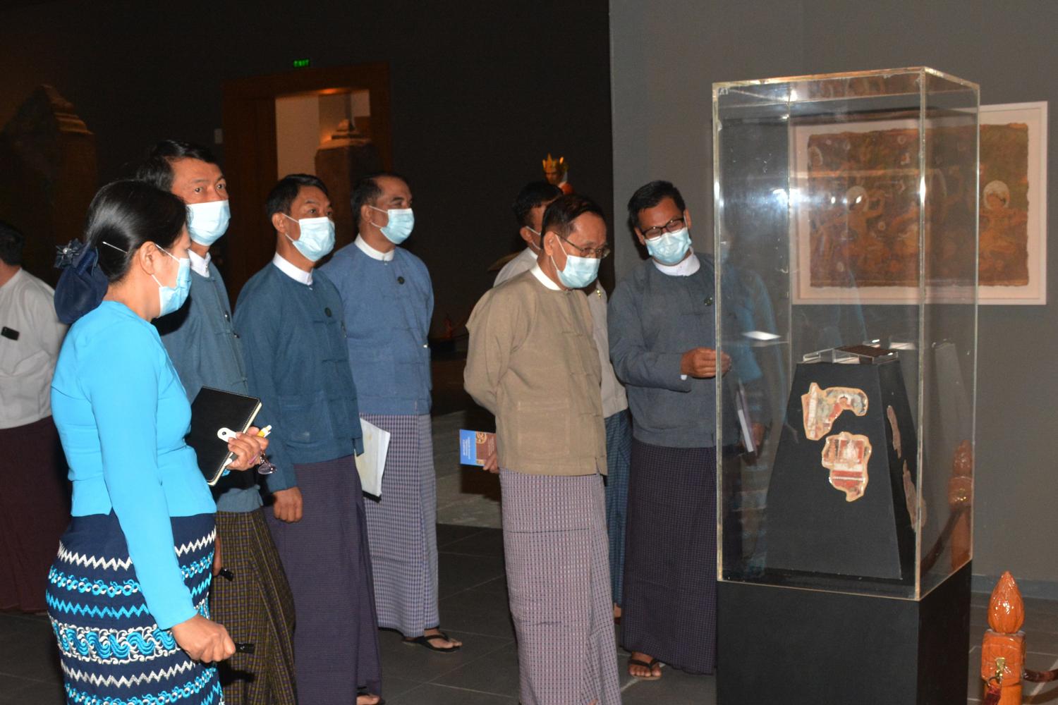 ထို့နောက် ပြည်ထောင်စုဝန်ကြီးသည် အမျိုးသားပြတိုက်(နေပြည်တော်)ရှိ လက်ဆောင် ပစ္စည်း များပြခန်း၊ ပရိုင်းမိတ်နှင့်ကျောက်ဖြစ်ရုပ်ကြွင်းပြခန်း၊ သမိုင်းမတင်မီ ခေတ်(ကျောက်ခေတ်၊ ကြေးခတ်၊ သံခေတ်)ပြခန်း၊ သမိုင်းတင်ခေတ်ဦး( ဘီစီ ၂ ရာစုမှ အေဒီ ၁၀ ရာစု )ပြခန်း၊ သမိုင်း တင်ခေတ်( အေဒီ ၁၁ ရာစုမှ အေဒီ ၁၄ ရာစု )ပြခန်း၊ မြန်မာ့အနုသုခုမပြခန်း၊ မြန်မာ့ပန်းချီပြခန်း၊ သီဟာသနပလ္လင်ပြခန်း၊ မြန်မာ့လက်မှု အနုပညာပြခန်းနှင့် အာဆီယံပြခန်းအတွင်း လှည့်လည် ကြည့်ရှုစစ်ဆေးရာ ရှေးဟောင်း သုတေသနနှင့် အမျိုးသားပြတိုက်ဦးစီးဌာန ညွှန်ကြားရေး မှူးချုပ်က လိုက်လံရှင်းလင်း ပြသသည်။