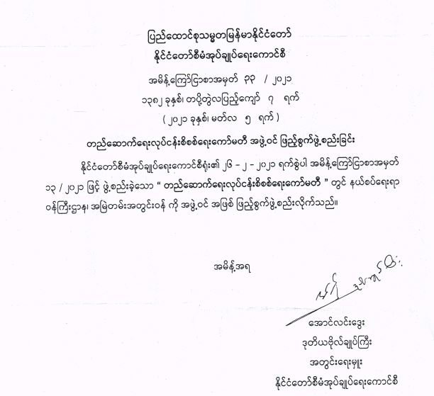 ဝန်ကြီးဌာန ကြေညာချက်များ