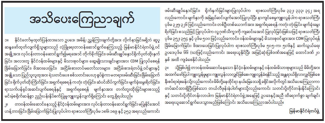 နိုင်ငံတော်အစိုးရ၏ ကြေညာချက်များ