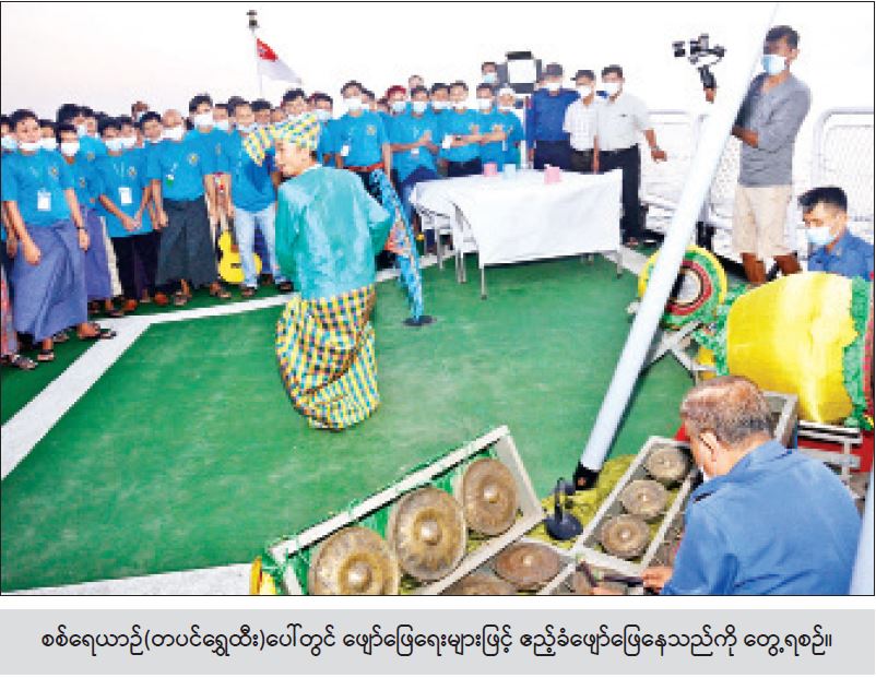 စစ်ရေယာဉ် (တပင်ရွှေထီး) ' သည် အိန္ဒိယနိုင်ငံ အန်ဒမန်ကျွန်း ရှိ ပို့ဘလဲယား (Port Blair) ဆိပ်ကမ်းသို့ မတ် ၇ ရက် မွန်းလွဲ ပိုင်းတွင် ရောက်ရှိခဲ့ပြီး မတ် (၈)ရက်တွင် မြန်မာနိုင်ငံသား ရေလုပ်သား ၇၀ ကို အိန္ဒိယနိုင်ငံ တာဝန်ရှိသူများထံမှ စနစ်တကျလွှဲပြောင်း လက်ခံပြီး လိုအပ်သည့် ကျန်းမာရေး စစ်ဆေးပေးခြင်း၊ အဝတ်အစား၊ အသုံးအဆောင်များ ထောက်ပံ့ ပေးခြင်း၊ စနစ်တကျ ကြိုဆိုနေရာချထားပေးခြင်းများ ဆောင်ရွက်ပေးခဲ့ပြီး မတ် ၉ ရက်တွင် အိန္ဒိယနိုင်ငံ ပို့ဘလဲယား (Port Blair) ဆိပ်ကမ်းမှ မြန်မာနိုင်ငံသို့ ပြန်လည် ထွက်ခွာခဲ့ရာ အသွားအပြန် ရေမိုင်ပေါင်း ၈၃၀ ခုတ်မောင်းခဲ့ပြီး ယနေ့မွန်းလွဲပိုင်း တွင် ရန်ကုန်မြို့ အမှတ်(၃) ရေတပ် ဆိပ်ကမ်းသို့ အောင်မြင်စွာ ပြန်လည် ရောက်ရှိသည်။ ။ စစ်ရေယာဉ် (တပင်ရွှေထီး)ဖြင့် ခေါ်ဆောင်လာခဲ့သော မြန်မာနိုင်ငံသား များကိုလမ်းခရီးတစ်လျှောက် လုံခြုံရေးဆောင်ရွက် ပေးခြင်း၊ ကျန်းမာရေး အထောက်အကူပြုစေရန် ကိုယ်လက်လေ့ကျင့်ခန်းများ ဆောင်ရွက်ခြင်း၊ ရေယာဉ်ပေါ်တွင် လိုက်ပါတာဝန် ထမ်းဆောင်နေသည့် ဆရာဝန်နှင့် သူနာပြုများက ကျန်းမာရေးဆိုင်ရာ စောင့်ရှောက်မှုများ အနီးကပ်ဆောင်ရွက်ပေးခြင်း၊ စိတ်အပန်းပြေစေရန် ဖျော်ဖြေရေး အစီအစဉ်နှင့် ရုပ်ရှင်ပြသပေးခြင်း၊ မုန့်ဟင်းခါး အပါအဝင် မြန်မာ့အစားအစာ များဖြင့် ကျွေးမွေးဧည့်ခံခြင်းတို့ ဆောင်ရွက်ပေးခဲ့သည်။