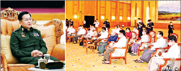နိုင်ငံတော်စီမံအုပ်ချုပ်ရေးကောင်စီ ဥက္ကဋ္ဌက စီးပွားရေးလုပ်ငန်းများ ပုံမှန် အတိုင်းဆက်လက် လည်ပတ်နိုင်စေရေးနဲ့ စည်းကမ်းတကျ ပြန်လည်လည်ပတ်နိုင် ရေးအတွက်လည်းကောင်း၊ တိုင်းပြည် တစ်ခုရဲ့ အဓိကမောင်းနှင်အား စီးပွားရေး ကဏ္ဍကို မြှင့်တင်ပေးနိုင်ရန်နှင့် ငွေရေး ကြေးရေးကဏ္ဍ တည်ငြိမ်မှုရှိစေရေးတို့ အတွက်လည်းကောင်း မြန်မာနိုင်ငံ ကုန်သည်များနှင့် စက်မှုလက်မှုလုပ်ငန်း ရှင်များ အသင်း ချုပ်နှင့် ညီနောင်အသင်း များမှ လုပ်ငန်းရှင်များ၊ မြန်မာနိုင်ငံဘဏ် များအသင်းမှ နာယက၊ ဥက္ကဋ္ဌနှင့် တာဝန်ရှိသူများ၊ ဘဏ်လုပ်ငန်းရှင်များ တို့နှင့် ဖေဖော်ဝါရီလ ၃ ရက်နေ့နှင့် ၄ ရက်နေ့တို့တွင် တွေ့ဆုံဆွေးနွေးခဲ့ပါ တယ်။ ထို့အတူ ငွေကြေးဆိုင်ရာကောလာဟလများနှင့် ပတ်သက်၍ ပြည်သူများ စိုးရိမ်ကြောင့်ကြမှုမရှိစေရေး အတွက် မြန်မာနိုင်ငံတော်ဗဟိုဘဏ်မှ လည်း သတင်းထုတ်ပြန်ချက်များကို အချိန်မဆိုင်း ထုတ်ပြန် ပေးနိုင်ခဲ့ပါတယ်။