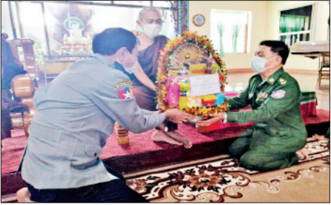 ဘုန်းတော်ကြီးကျောင်းများ၊ သာသနာ့နွယ်ဝင် သီလရှင်ကျောင်းများနှင့် ဘာသာရေးကျောင်းများ တွင် ဆွမ်းအဆင်ပြေစေရေးအတွက် တပ်မတော် (ကြည်း၊ ရေ၊ လေ) အရာရှိ စစ်သည် အရာထမ်း၊ အမှုထမ်းများက တိုင်းစစ်ဌာနချုပ်များအလိုက် မြို့နယ်အသီးသီး၌ ဆွမ်းဆန်တော်၊ ဆီ၊ ဆား၊ ပဲ အမည်လေးမျိုးနှင့် လှူဖွယ်ပစ္စည်းများ လှူဒါန်းခြင်း၊ နေ့ဆွမ်း ဆက်ကပ်လှူဒါန်းခြင်းနှင့် ကျန်းမာရေး စစ်ဆေးမှုများကို ဆောင်ရွက်လျက်ရှိသည်။