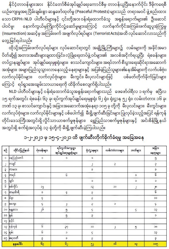 ဆူပူအကြမ်းဖက်မှု ဖြစ်စဉ်များတွင် မှန်ကန်မှုမရှိသည့် သေဆုံးမှုစာရင်းများနှင့် ပတ်သက်၍ သတင်းထုတ်ပြန်ချက် 04/29/2021