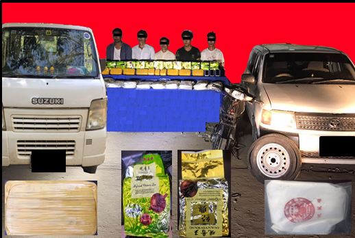 မူးယစ်ဆေးဝါးတားဆီးနှိမ်နင်းရေးရဲတပ်ဖွဲ့မှ တပ်ဖွဲ့ဝင်များပါဝင်သော ပူးပေါင်းအဖွဲ့ သည် မေ ၁၆ ရက် မွန်းလွဲ ၁၂ နာရီခွဲတွင် ပင်လောင်းမြို့နယ်၊ ပင်လောင်း-တပ်ကုန်းသွား ကားလမ်း၊ လိန်းလီကြိုးတံတားပူးပေါင်းစစ်ဆေးရေးစခန်း၌ ပင်လောင်းမှ လိန်းလီဘက်သို့ စိုင်းထွန်း (၄၉)နှစ် မောင်းနှင်ပြီး ခွန်လှသိန်း(၂၈)နှစ် လိုက်ပါလာသည့် PROBOX မော်တော် ယာဉ်အား ရှာဖွေရာ မော်တော်ယာဉ်၏ ကိုယ်ထည် အတွင်း၌ မူးယစ်ဆေးဝါးများထည့်သွင်း သယ်ဆောင် လာကြောင်း မသင်္ကာဖွယ်တွေ့ရှိရသဖြင့် အဆိုပါယာဉ်နှင့် ဆက်စပ်ပတ်သက် သူများကို အချိန်နှင့်တစ်ပြေးညီ ဖော်ထုတ်ဖမ်းဆီးရမိရေး ဆောင်ရွက်ခဲ့ရာ တပ်ကုန်းမြို့နယ်၊ ကင်းသာ ကျေးရွာအနီးတွင် ခွန်ညွန့်မောင် (ခ) စိုးမောင် (၂၆) နှစ်အား HIJET မော်တော်ယာဉ်နှင့် လည်းကောင်း၊ ညနေ ၆ နာရီအချိန် နေပြည်တော်၊ ဇေယျာသီရိမြို့နယ်၊ ရန်ကုန်-မန္တလေး လမ်းဟောင်း ရေဆင်းမီးပွိုင့်အနီးတွင် မူးယစ်ဆေးဝါးများ လက်ခံမည့် သူများဖြစ်သည့် ဇင်သူကျော် (ခ)ကိုမြင့် (၃၄)နှစ်နှင့် နေလင်းထွန်း(ခ)ရခိုင်ကြီး (၃၃)နှစ် တို့ကို မော်တော် ဆိုင်ကယ်တစ်စီးနှင့်လည်းကောင်း ဆက်လက်ဖမ်းဆီးရမိခဲ့သဖြင့် ၎င်းတို့ အား ထိန်းသိမ်း ရှာဖွေရာ PROBOX မော်တော်ယာဉ်အတွင်းမှ မူးယစ်ဆေးဝါးများ စုစုပေါင်း ဒေသကာလ တန်ဖိုးငွေကျပ်သိန်း ၇,၀၀၀ ကျော်တန်ဖိုးရှိ အိုက်စ် ၁၉ ကီလို၊ ကက်တမင်း ၁၃ ကီလိုနှင့် စိတ်ကြွ ရူးသွပ်ဆေးပြား ၈၆,၀၀၀ သိမ်းဆည်းရမိခဲ့ပြီး စစ်ဆေးပေါ်ပေါက် ချက်များအရ သိမ်းဆည်းရမိသော မူးယစ်ဆေးဝါးများမှာ ရှမ်း ပြည်နယ် (တောင်ပိုင်း)၊ မိုင်းရှူးမြို့နယ်မှ ပဲခူးတိုင်း ဒေသကြီး၊ ဘုရားကြီးမြို့သို့ သယ်ဆောင်ခြင်းဖြစ်ကြောင်း သိရှိရသဖြင့် ၎င်းတို့အား မူးယစ် ဆေးဝါးနှင့်စိတ်ကိုပြောင်းလဲစေသော ဆေးဝါးများဆိုင်ရာ ဥပဒေအရ အရေး ယူထားရှိပြီး ကွင်းဆက်ပြစ်မှုကျူးလွန်သူများအား စစ်ဆေးဖော်ထုတ်လျက် ရှိကြောင်း မြန်မာနိုင်ငံရဲ တပ်ဖွဲ့မှ သိရသည်။