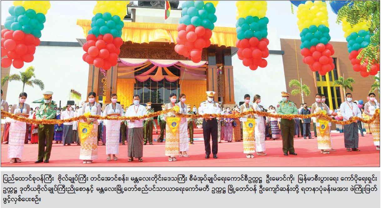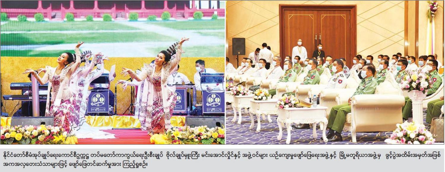 ယင်းနောက် ယဉ်ကျေးမှုဖျော်ဖြေရေးအဖွဲ့နှင့် မြို့မတူရိယာအဖွဲ့မှ ဖွင့်ပွဲအထိမ်း အမှတ်အဖြစ် အကအလှတေးသံသာများဖြင့် ဖျော်ဖြေတင်ဆက်မှုအား ကြည့်ရှုကြသည်။ ၎င်းနောက် နိုင်ငံတော်စီမံအုပ်ချုပ်ရေးကောင်စီဥက္ကဋ္ဌ တပ်မတော်ကာကွယ်ရေးဦးစီးချုပ်က ယဉ်ကျေးမှုဖျော်ဖြေရေးအဖွဲ့နှင့် မြို့မတူရိယာအဖွဲ့အား ဂုဏ်ပြု လက်ဆောင်နှင့် ဂုဏ်ပြုချီးမြှင့်ငွေများ ပေးအပ်ချီးမြှင့်ပြီး အမှတ်တရ စုပေါင်းဓာတ်ပုံရိုက်ကူးကြသည်။
