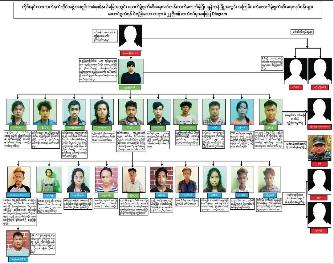 ဖမ်းဆီးရမိသူများ၏ ထွက်ဆိုချက်အရ ဖောက်ခွဲဖျက်ဆီးရေး သင်တန်းတက်ရောက်၍ အကြမ်းဖက် လုပ်ရပ်များဆောင်ရွက်ရန် နောက်ကွယ်မှ သွေးထိုးလှုံ့ဆော်၍ စည်းရုံး ထောက်ပံ့ပေးသူများဖြစ်သည့် လှိုင်မြို့နယ်၊ အမှတ်(၁၆)ရပ်ကွက်၊ ဦးအေး ၃ လမ်းနေ ထွန်းထွန်း၊ လှိုင်မြို့နယ်၊ အမှတ်(၁၆)ရပ်ကွက်၊ မာလာမြိုင် ၃ လမ်းနေ ဥက္ကာ(NLD ရပ်/ကျေးဥက္ကဋ္ဌ)၊ ကျောက်မြောင်းရပ်ကွက်၊ သီတာလမ်းနေ ရန်ကုန်(ခ) စောမိုက်ကယ်လင်း၊ ဗြိတိန်နိုင်ငံနေ တောသားကြီး၊ ဖောက်ခွဲဖျက်ဆီးရေးသင်တန်းတက်ရောက်ပြီး ထွက်ပြေး လွတ်မြောက်လျက်ရှိသည့် လှိုင်မြို့နယ်၊ ရပ်ကွက်(၃)နေ ရဲခန့်၊ သင်တန်းကျောင်းသို့ သွားရောက်ရန် ချိတ်ဆက်ဆောင်ရွက်ပေးသူ ဘီးလင်းမြို့၊ ဖိုးလှကြီးရပ်ကွက်၊ နွယ်နီ လမ်းနေ တင့်လွင်ဦး(ခ)ဖိုးနီနှင့် လိုက်ပါပို့ဆောင်ပေးသူ ဘီးလင်းမြို့နယ်နေ လင်းထိုက်တို့အား ဆက်လက်ဖမ်းဆီးရမိရေး ဆောင်ရွက်လျက်ရှိသည်။