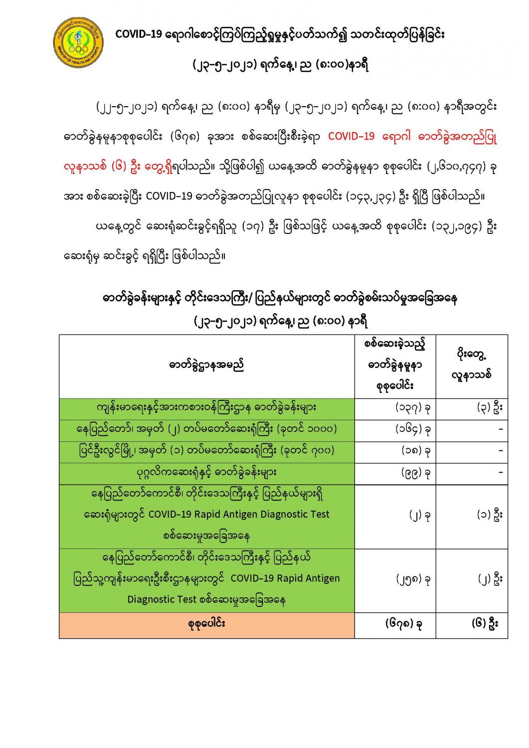 COVID-19 ရောဂါစောင့်ကြပ်ကြည့်ရှုမှုနှင့်ပတ်သက်၍ သတင်းထုတ်ပြန်ခြင်း (၂၃-၅-၂၀၂၁) ရက်နေ့၊ ည (၈:၀၀)နာရီ 05/23/2021