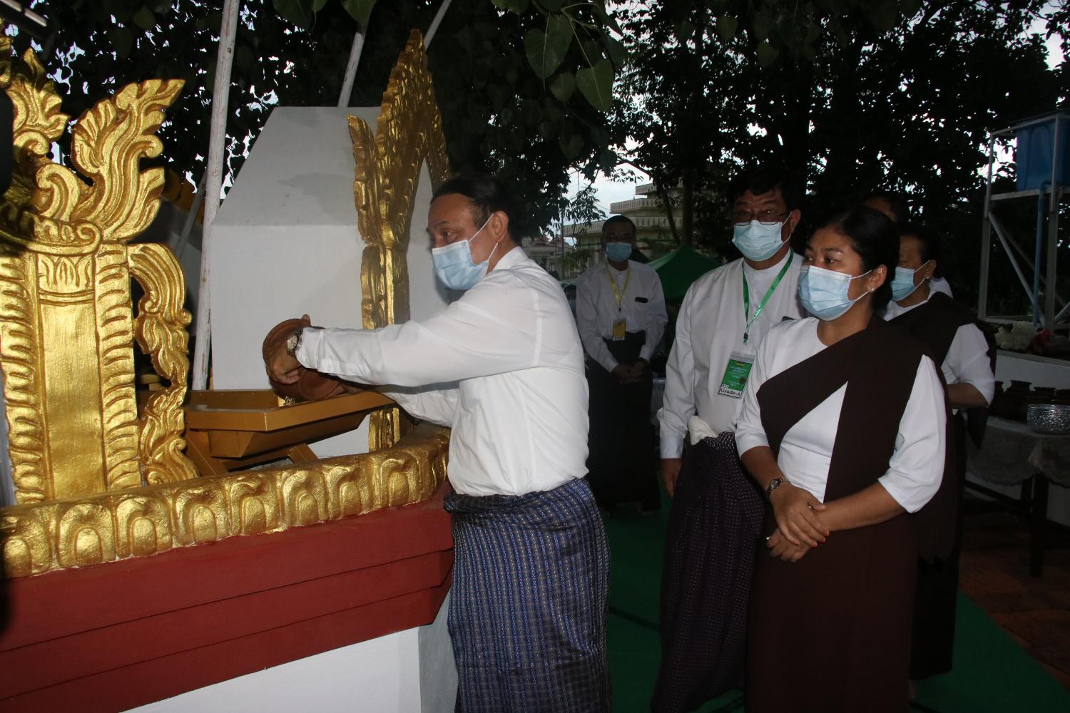 ထို့နောက် ပြည်ထဲရေးဝန်ကြီးဌာန ပြည်ထောင်စုဝန်ကြီး ဒုတိယဗိုလ်ချုပ်ကြီး စိုးထွဋ်၏ ဇနီး၊ ဒုတိယဝန်ကြီး ဗိုလ်ချုပ် စိုးတင့်နိုင်၊ ဒုတိယဝန်ကြီးများ၏ဇနီးများ၊ ပြည်ထဲရေးဝန်ကြီးဌာနအောက်ရှိ တပ်ဖွဲ့၊ဦးစီးဌာနများမှ အရာရှိ ကြီးများနှင့် ဇနီးများ၊ မိသားစုများသည် တောင်းဆုရစေတီတော် ပရဝဏ်အတွင်းရှိမဟာဗောဓိညောင်ပင်ကို ညောင်ရေသွန်းလောင်းပူဇော်၍ အမွှေးနံ့သာရေများ ပက်ဖျန်းပူဇော်ခဲ့ကြောင်း သိရသည်။