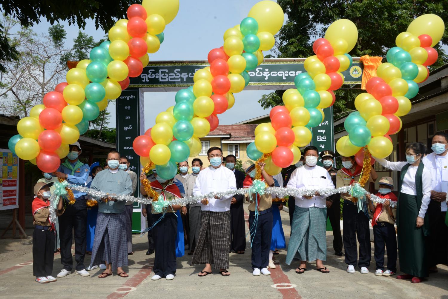 ဆက်လက်၍ ပြည်ထောင်စုဝန်ကြီး ဒေါက်တာညွန့်ဖေ၊ ရှမ်းပြည်နယ်စီမံအုပ်ချုပ်ရေး ကောင်စီဉက္ကဌ ဒေါက်တာကျော်ထွန်းနှင့် ပညာရေးဝန်ကြီးဌာန ဒုတိယဝန်ကြီး ဦးဇော်ဝင်းတို့ က ၂၀၂၁-၂၀၂၂ ပညာသင်နှစ်၊ ရှမ်းပြည်နယ်(တောင်ပိုင်း) ပြည်နယ်အဆင့် ကျောင်းအပ် နှံရေး နေ့ အခမ်းအနားကို ဖဲကြိုးဖြတ်ဖွင့်လှစ်ကြသည်။