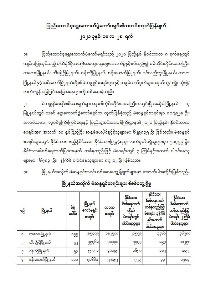 ပြည်ထောင်စုရွေးကောက်ပွဲကော်မရှင်၏သတင်းထုတ်ပြန်ချက် ၂၀၂၁ ခုနှစ်၊ မေလ ၂၈ ရက်