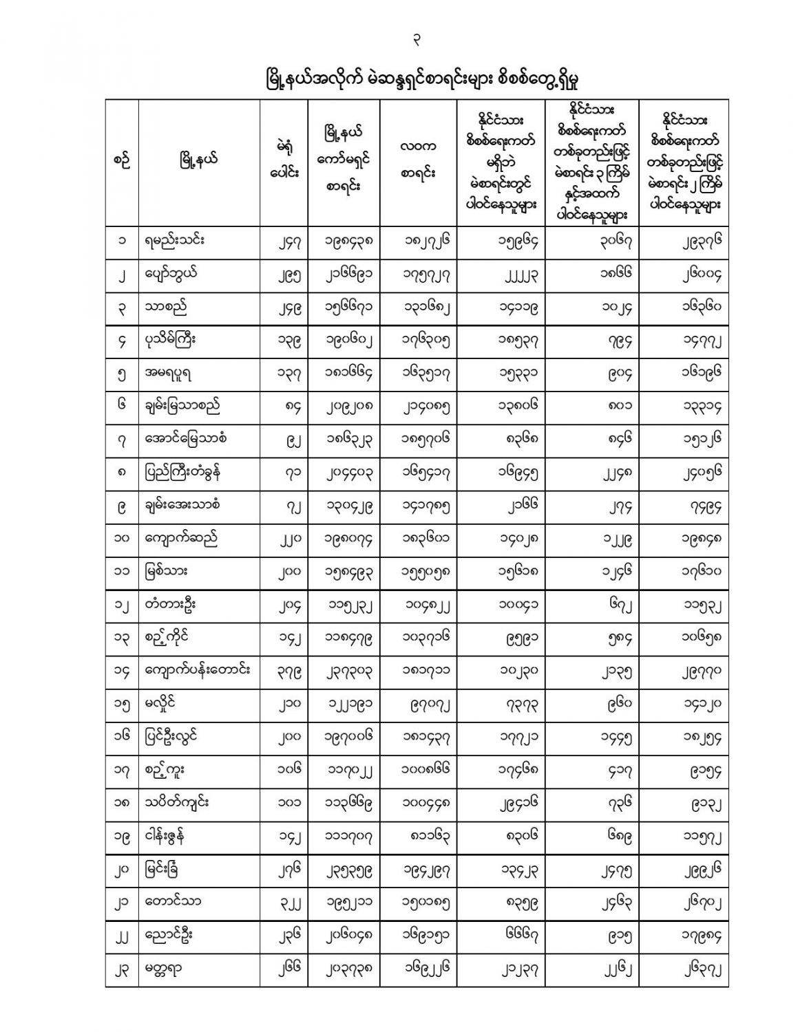 ဝန်ကြီးဌာန ကြေညာချက်များ