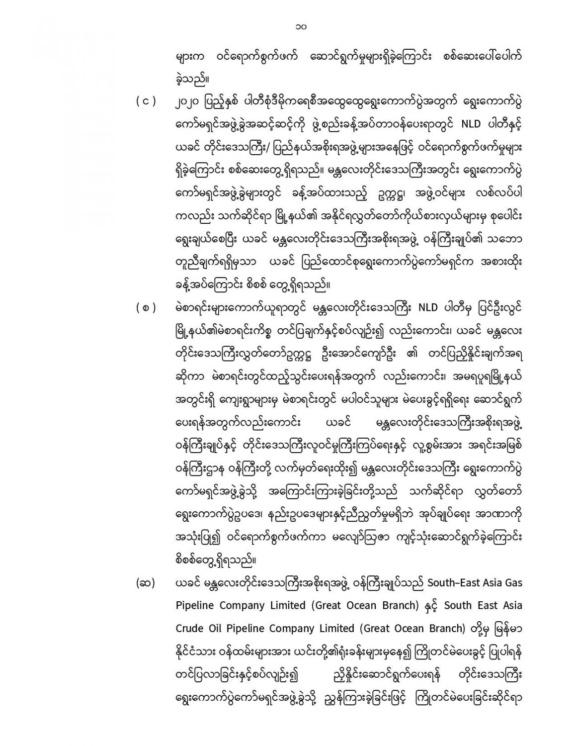 ဦးစီးဌာနနှင့် လုပ်ငန်းများ၏ ကြေညာချက်များ