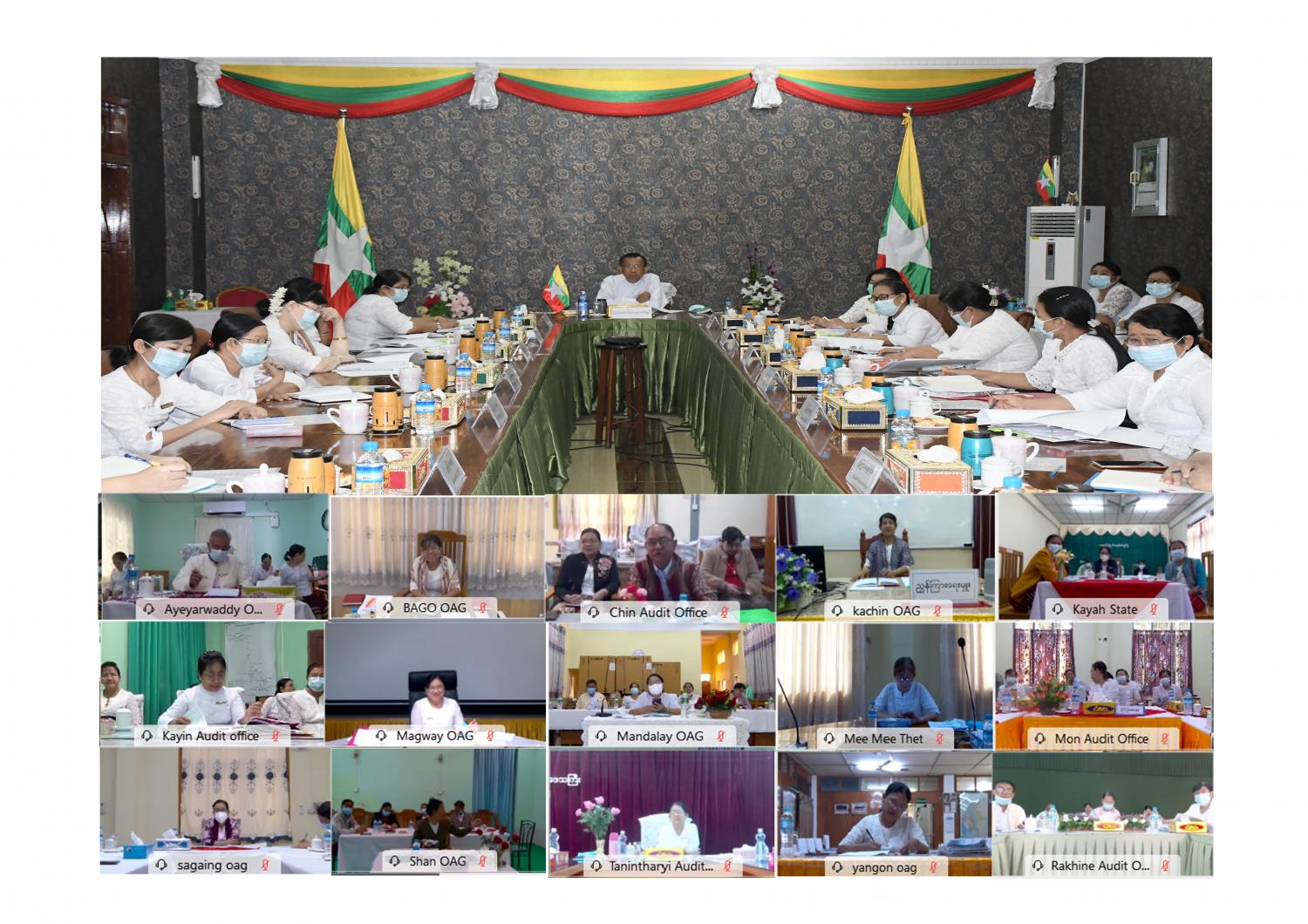 ပြည်ထောင်စုစာရင်းစစ်ချုပ်နှင့် တိုင်းဒေသကြီး/ပြည်နယ်စာရင်းစစ်ချုပ်ရုံး တာဝန်ခံ ညွှန်ကြားရေးမှူးများနှင့် တွေ့ဆုံပွဲကို ယနေ့နံနက် ၁၀ နာရီတွင် ပြည်ထောင်စုစာရင်းစစ်ချုပ် ရုံး၊ အစည်းအဝေး ခန်းမ၌ Virtual System ဖြင့် ကျင်းပသည်။