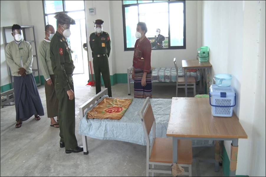 ယင်းသို့ ပြင်ဆင်ဆောင်ရွက်ပေးနေမှုများနှင့် ကျန်းမာရေးစောင့်ရှောက်မှု လုပ်ငန်းများ ဆောင်ရွက်ပေးနေမှုများကို ယနေ့တွင် တိုင်းဒေသကြီးနှင့် ပြည်နယ် အသီးသီးမှ တာဝန်ရှိသူများ၊ သက်ဆိုင်ရာတိုင်းစစ်ဌာနချုပ် များမှ တိုင်းမှူးများနှင့် တာဝန်ရှိသူများက သွားရောက်ကြည့်ရှု၍ ကိုဗစ်-၁၉ ရောဂါ အထောက်အကူပြု ပစ္စည်းများ၊ အာဟာရဖြည့် စားသောက်ဖွယ်ရာများနှင့် အလှူငွေများပေးအပ်ကာ လိုအပ်သည်များ ညှိနှိုင်းဆောင်ရွက် ပေးသည်။