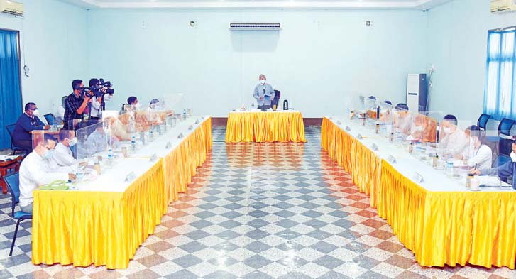 အစည်းအဝေးသို့ ပြည်တွင်း နေရပ်စွန့်ခွာသူများ ပြန်လည်နေရာချထားရေးနှင့် ယာယီခိုလှုံ ရာစခန်းများ ပိတ်သိမ်းရေးဆိုင်ရာ သတင်းနှင့် ပြန်ကြားရေးလုပ်ငန်း ကော်မတီဥက္ကဋ္ဌ ပြန်ကြားရေး ဝန်ကြီးဌာန ဒုတိယဝန်ကြီး ဦးရဲတင့်နှင့် အဖွဲ့ဝင်များတက် ရောက်ကြသည်။
