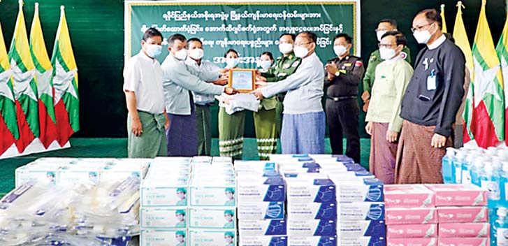 ဦးစွာ ပြည်နယ်ဝန်ကြီးချုပ်နှင့် တိုင်းမှူးတို့က အမှာစကားများပြောကြားပြီး ကျန်းမာရေး ဝန်ထမ်းများအတွက် ချီးမြှင့်ငွေကျပ် သိန်း ၂၀၊ ဆေးရုံကြီး၌ အောက်ဆီဂျင်စက်ရုံ တည်ဆောက် ရန်အတွက် အလှူငွေကျပ်သိန်း ၁၀၀ နှင့် ကျန်းမာရေး အထောက်အကူ ပြုပစ္စည်းများတို့ကို ပေးအပ်ကြရာ တာဝန်ရှိသူများက အသီးသီးလက်ခံရယူခဲ့ကြသည်။