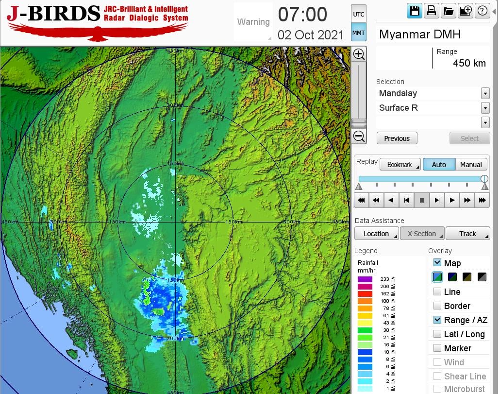 ယနေ့ညနေအထိခန့်မှန်းချက်။ နေပြည်တော်တွင် နေရာအနှံ့အပြား၊ ပဲခူးတိုင်းဒေသကြီး၊ ရှမ်းပြည်နယ်(တောင်ပိုင်း)နှင့် ချင်းပြည်နယ်တို့တွင် နေရာစိပ်စိပ်၊ စစ်ကိုင်းတိုင်းဒေသကြီး အောက်ပိုင်း၊ မန္တလေးတိုင်းဒေသကြီး၊ မကွေးတိုင်းဒေသကြီး၊ ရန်ကုန်တိုင်းဒေသကြီး၊ တနင်္သာရီတိုင်းဒေသကြီး၊ကချင်ပြည်နယ်၊ ကယားပြည်နယ်၊ ကရင်ပြည်နယ် နှင့် မွန်ပြည်နယ် တို့တွင် နေရာကျဲကျဲနှင့် ကျန်တိုင်းဒေသကြီးနှင့် ပြည်နယ်တို့တွင် နေရာကွက်ကျား မိုးထစ်ချုန်းရွာပြီး၊ နေပြည်တော်တွင် ဒေသအလိုက်နှင့် မန္တလေးတိုင်းဒေသကြီးတွင် နေရာကွက်၍ မိုးကြီးနိုင်ပါသည်။ ရွာရန်ရာနှုန်းပြည့် ဖြစ်ပါသည်။
