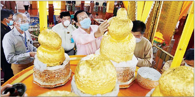 ယင်းနောက် နိုင်ငံတော်စီမံအုပ်ချုပ်ရေးကောင်စီဥက္ကဋ္ဌ၊ နိုင်ငံတော်ဝန်ကြီးချုပ်၊ ဇနီးနှင့် အဖွဲ့ဝင် များသည် ညောင်ရွှေမြို့နယ်၊ အင်းလေးဒေသရှိ အင်းလေး ဖောင်တော်ဦး စေတီတော်မြတ်ကြီး သွားရောက် ဖူးမြော်ကြည်ညိုကြရာ ဂေါပက အဖွဲ့ဥက္ကဋ္ဌ ဦးထွန်းအောင်၊ ဌာနဆိုင်ရာများနှင့် ရပ်မိရပ်ဖများက ကြိုဆိုနှုတ်ဆက်ကြသည်။ ယင်းနောက် စေတီတော်မြတ်ကြီးအတွင်းရှိ ဗုဒ္ဓရုပ်ပွားတော်မြတ်များကို ပန်း၊ ရေချမ်း၊ ဆီမီးနှင့် ရွှေသင်္ကန်းများ ကပ်လှူပူဇော်ပြီး စေတီတော် မှတ်တမ်း စာအုပ်တွင် အမှတ်တရ လက်မှတ်ရေးထိုးပူဇော်သည်။ ထို့နောက် ဘက်စုံ အလှူငွေများကို ပေးအပ်လှူဒါန်းရာ ဂေါပကအဖွဲ့က လက်ခံရယူပြီး ဓမ္မလက်ဆောင်များ ပြန်လည်ပေးအပ်သည်။