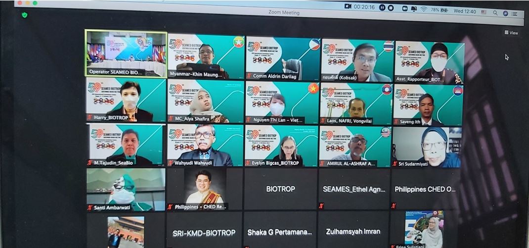 SEAMEO BIOTROP (၅၉)ကြိမ်မြောက် အုပ်ချုပ်ရေးဘုတ်အဖွဲ့ အစည်းအဝေးကို အင်ဒိုနီးရှားနိုင်ငံ၊ ဘိုဂေါမြို့၊ IPB အပြည်ပြည်ဆိုင်ရာ ကွန်ဗင်းရှင်းစင်တာတွင် အောက်တိုဘာ ရက်မှ ရက်အထိ Virtual Online ဖြင့် ကျင်းပရာ မြန်မာနိုင်ငံမှ SEAMEO BIOTROP ဘုတ် အဖွဲ့ဝင်ဖြစ်သော သယံဇာတနှင့် သဘာဝပတ်ဝန်းကျင်ထိန်းသိမ်းရေး ဝန်ကြီးဌာန၊ သစ်တောနှင့် ပတ်ဝန်းကျင်ဆိုင်ရာတက္ကသိုလ်၊ ပါမောက္ခချုပ် ဒေါက်တာခင်မောင်ဆင့် တက်ရောက်ခဲ့သည်။