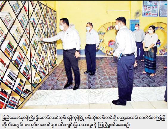 ထို့နောက် ပြည်ထောင်စုဝန်ကြီးသည် ကျောက်တံတားမြို့နယ် ပန်းဆိုးတန်းလမ်းရှိ ပညာ့ အလင်းခေတ်မီစာကြည့်တိုက်၏ စာကြည့်တိုက်ဝန်ဆောင် မှုလုပ်ငန်းများကို ကြည့်ရှုစစ်ဆေး ပြီး ပြည်သူများ စာအုပ်စာပေဖတ်ရှုသည့် အလေ့အထများ ဖြစ်ပေါ်လာရေးနှင့် မှန်ကန်သည့် သတင်းအချက်အလက်များကို စာကြည့်တိုက်များမှတစ်ဆင့် ဖြန့်ဝေပေးနိုင်ရေး ကြိုးစား ဆောင်ရွက်ကြရန် လိုကြောင်း၊ စာကြည့်တိုက်တိုင်းတွင် သတင်းစာ၊ ဂျာနယ်၊ မဂ္ဂဇင်း စသည့် စာနယ်ဇင်းများကို ပြည်သူများ အလွယ်တကူ ဖတ်ရှုလေ့လာနိုင်ရန် စုံလင်အောင် ထားရှိပေး ရမည်ဖြစ် ကြောင်း၊ စာကြည့်တိုက်များတွင် ကျောင်းသားလူငယ်များ ဖတ်ရှုလေ့လာလိုသည့် စာအုပ် စာစောင်များကို ထားရှိပေး ကြစေလိုကြောင်း၊ လူငယ်များအတွက် အသက်မွေးဝမ်း ကျောင်းကို အထောက်အကူပြုသည့် စာအုပ်စာစောင်များ၊ လူငယ်များ စိတ်ဓာတ်မြှင့် တင်ရေး နှင့် ဖွံ့ဖြိုးတိုးတက်ရေးကို အထောက်အကူ ပြုသည့် စာအုပ်စာစောင်များကို ဦးစားပေး ထားရှိပေးစေလိုကြောင်း၊ စာကြည့်တိုက် ဝန်ဆောင်မှု လုပ်ငန်းများကို ခေတ်နှင့်အညီ မြှင့်တင် ဆောင် ရွက်ရမည်ဖြစ်သဖြင့် Digital Library Service ပြောင်းလဲ ဆောင်ရွက်နိုင်ရေးအတွက် လို အပ်သည်များကို ကြိုတင်ပြင်ဆင် ထားရန် ဆွေးနွေးမှာကြားခဲ့ကြောင်း သိရသည်။