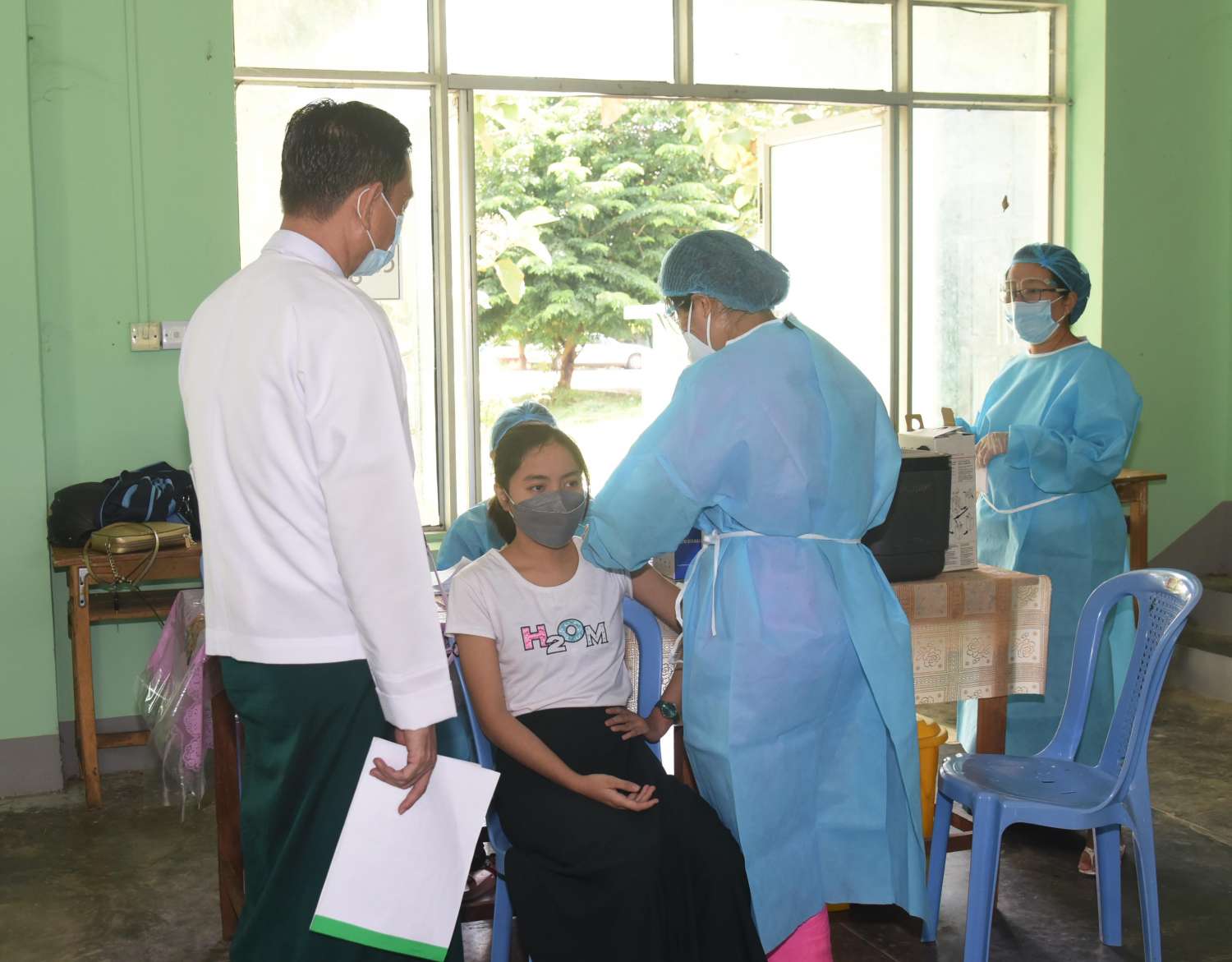 ထို့ကြောင့် မြို့နယ်အလိုက် ဆေးထိုးနှံရန် သတ်မှတ်ထားသည့် စုရပ်နေရာများ၌  အခြေခံပညာ အလယ်တန်း၊ အထက်တန်းတို့တွင် ပညာသင်ကြားလျက်ရှိသည့် ကျောင်းသား၊ ကျောင်းသူများအား နေ့ရက်အလိုက် သတ်မှတ်ထားသည့် လူဦးရေစာရင်းအလိုက် ကျန်းမာရေးဝန်ထမ်း များက ကိုဗစ် - ၁၉ ကာကွယ်ရေး နည်းလမ်းများနှင့်အညီ ကာကွယ်ဆေးထိုးနှံပေးကြသည်။