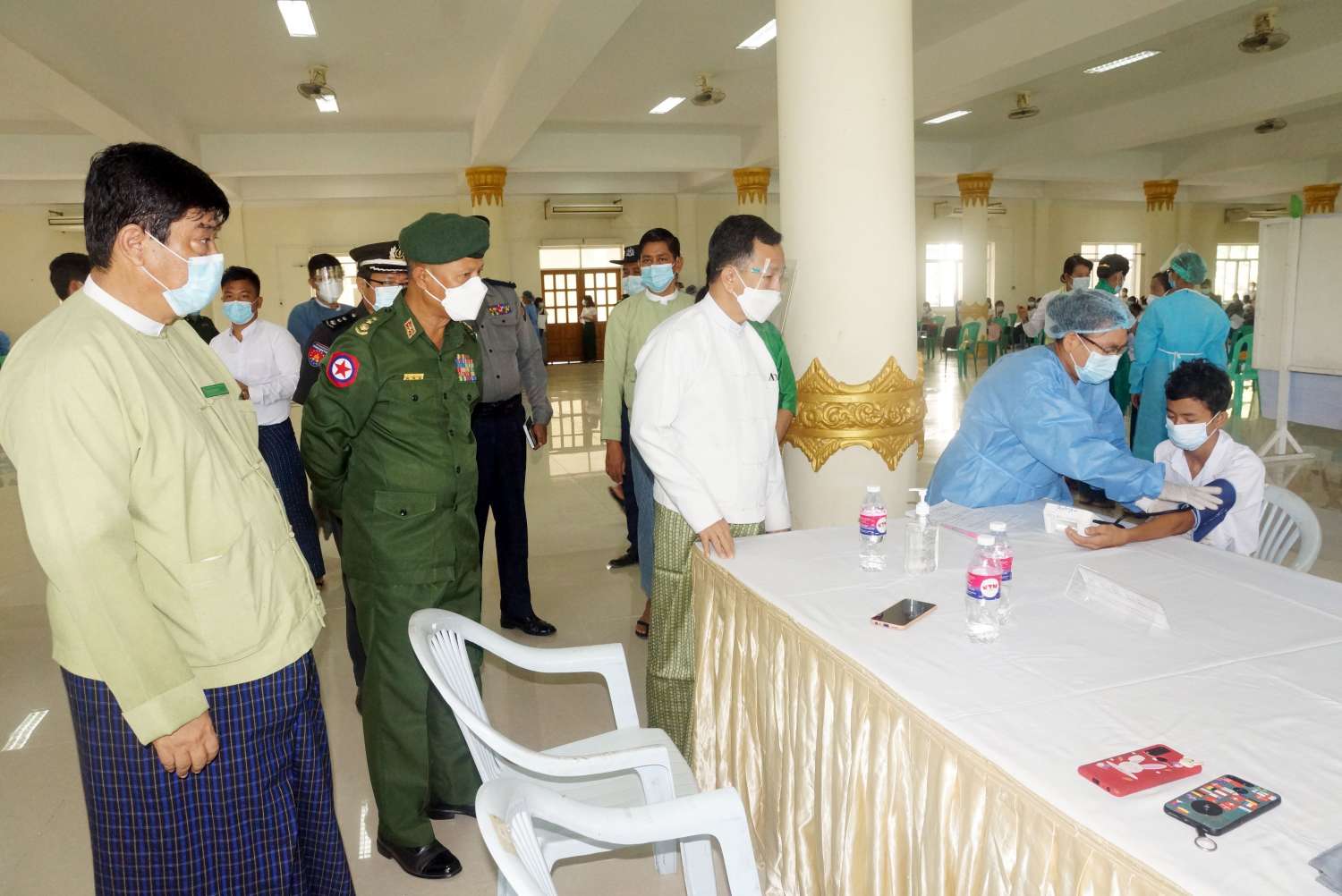 နေပြည်တော်ကောင်စီဥက္ကဋ္ဌနှင့်အဖွဲ့သည် ကိုဗစ်-၁၉ရောဂါ ကာကွယ်ဆေးထိုးနှံသည့် ဆေးထိုးစုရပ်အသီးသီးတွင် အသက်၁၂နှစ်နှင့် အထက်အခြေခံပညာအထက်တန်းနှင့် အလယ်တန်း အဆင့် ကျောင်းသား၊ ကျောင်းသူများအား ကိုဗစ်-၁၉ရောဂါကာကွယ် ဆေးထိုးနှံပေးနေမှုကို ကြည့်ရှုအားပေးပြီး ကာကွယ်ဆေးလာရောက်ထိုးနှံသည့် ကျောင်းသား၊ ကျောင်းသူများကို ရင်းရင်းနှီးနှီး အားပေးစကားပြောကြား၍ နှာခေါင်းစည်း Mask များဖြန့်ဝေပေးကာ တာဝန်ရှိသူများအား လိုအပ်သည်များကို မှာကြားသည်။
