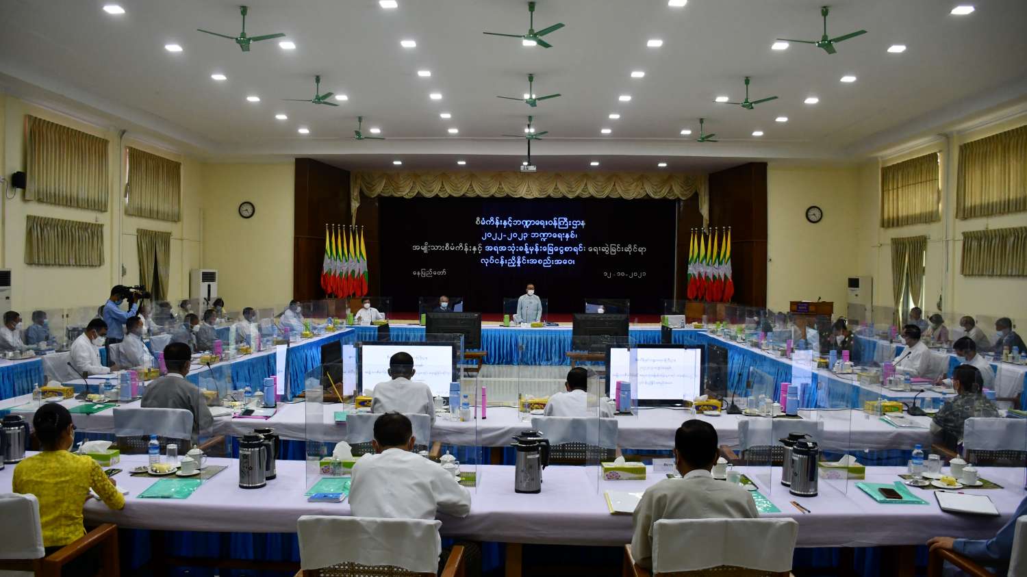 ၂၀၂၂-၂၀၂၃ ဘဏ္ဍာရေးနှစ်၊ အမျိုးသားစီမံကိန်းနှင့် အရအသုံးခန့်မှန်းခြေ ငွေစာရင်း ရေးဆွဲခြင်းဆိုင်ရာ ညှိနှိုင်းအစည်းအဝေးကို ယနေ့ မွန်းလွဲ ၁ နာရီတွင် စီမံကိန်းနှင့်ဘဏ္ဍာရေးဝန်ကြီးဌာန၊ အစည်းအဝေးခန်းမ၌ကျင်းပရာ ပြည်ထောင်စုဝန်ကြီးများ၊ ပြည်ထောင်စုစာရင်းစစ်ချုပ်၊ ဒုတိယဝန်ကြီးများ၊ အမြဲတမ်းအတွင်းဝန်များနှင့် ညွှန်ကြားရေးမှူးချုပ်များ တက်ရောက်ကြသည်။