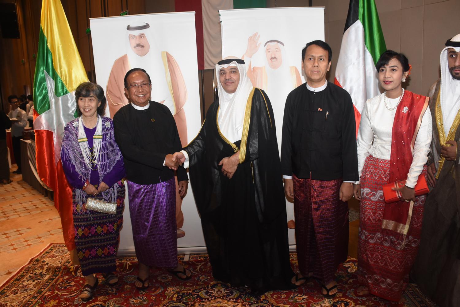 ကူဝိတ်နိုင်ငံ၏ (၅၉) နှစ်မြောက်အမျိုးသားနေ့နှင့် (၂၉) နှစ်မြောက် လွတ်လပ်ရေးနေ့ အထိမ်းအမှတ် ဧည့်ခံပွဲအခမ်းအနားကို ယနေ့ ည ၇ နာရီတွင် ရန်ကုန်မြို့ Melia Hotel ၌ ကျင်းပရာ ဆောက်လုပ်ရေးဝန်ကြီးဌာန ပြည်ထောင်စုဝန်ကြီး ဦးဟန်ဇော်နှင့် ဇနီးတို့ တက်ရောက်ကြသည်။