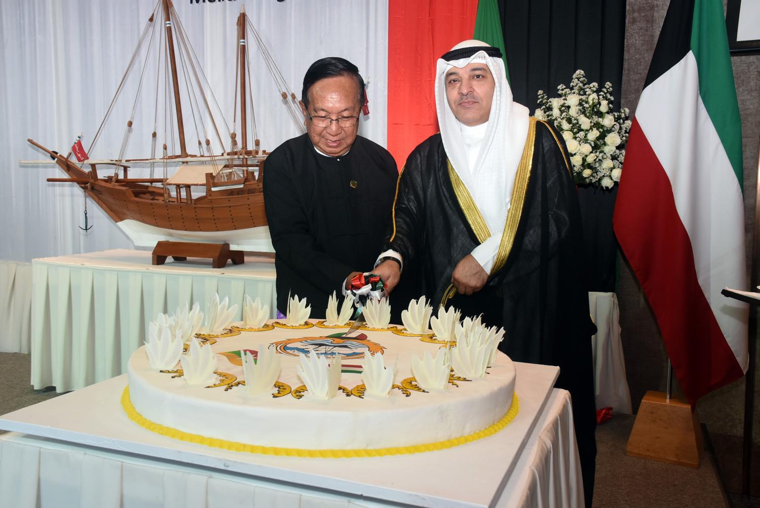 ထို့နောက် ပြည်ထောင်စုဝန်ကြီး ဦးဟန်ဇော်၊ မြန်မာနိုင်ငံဆိုင်ရာ ကူဝိတ်နိုင်ငံ သံရုံးယာယီ တာဝန်ခံ Mr. Adel M F A Al Adghan တို့က ကူဝိတ်နိုင်ငံ၏ (၅၉) နှစ်မြောက် အမျိုးသားနေ့နှင့် (၂၉) နှစ်မြောက် လွတ်လပ်ရေးနေ့ အထိမ်းအမှတ်ကိတ်ကို လှီးဖြတ်ပေးကြသည်။