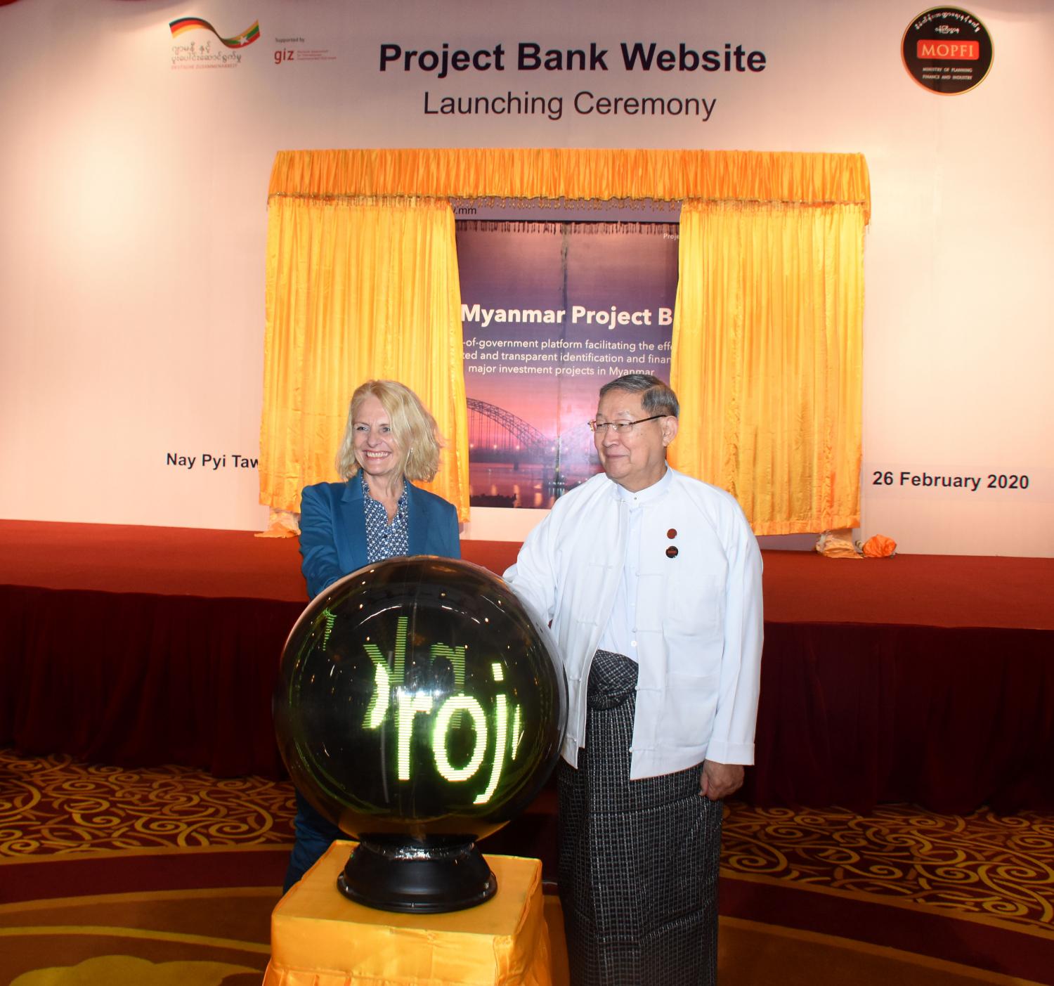 စီမံကိန်း၊ ဘဏ္ဍာရေးနှင့်စက်မှုဝန်ကြီးဌာနနှင့် GIZ တို့ ပူးပေါင်း၍ စီမံကိန်းဘဏ် Website စတင်လွှင့်တင်ခြင်း အခမ်းအနားကို ယနေ့နံနက် ၉ နာရီခွဲတွင် နေပြည်တော်ရှိ သင်္ဂဟဟိုတယ်၌ ကျင်းပသည်။