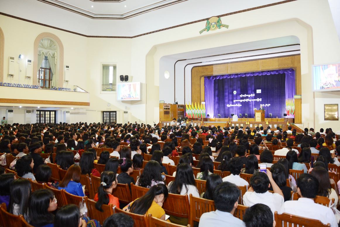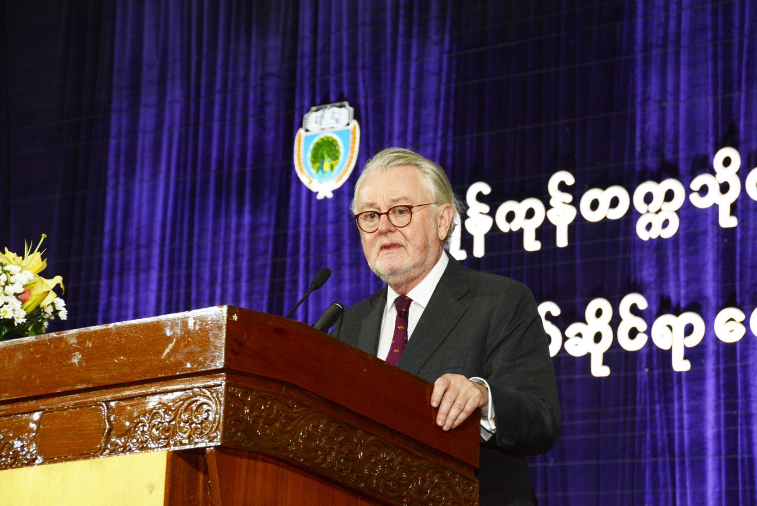 ဗြိတိန်နိုင်ငံ လိုက်ဒန်တက္ကသိုလ်နှင့် မစ်ဒယ်ဆက်စ်တက္ကသိုလ်တို့မှ နိုင်ငံတကာ ဥပဒေပညာရှင် ပါမောက္ခ မစ္စတာ ဝီလျံရှေးဘတ်စ် သည် ယနေ့ နံနက်ပိုင်းက ရန်ကုန်တက္ကသိုလ် ဘွဲ့နှင်းသဘင်ခန်းမ၌ ICJ အတွေ့အကြုံများနှင့် နိုင်ငံတကာ ဥပဒေဆိုင်ရာများကို ဟောပြောသည်။