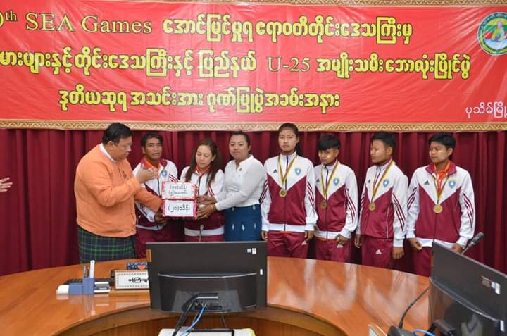 ထို့နောက် ဝန်ကြီးချုပ်နှင့် တာဝန်ရှိသူများမှ အကြိမ် (၃၀) မြောက် SEA Game ပြိုင်ပွဲတွင် အောင်မြင်မှု ရရှိခဲ့သော ဧရာဝတီတိုင်းဒေသကြီးမှ အားကစားသမားများနှင့် တိုင်းဒေသကြီးနှင့် ပြည်နယ် အသက် (၂၅) နှစ်အောက် အမျိုးသမီးဘောလုံးပြိုင်ပွဲတွင် ဒုတိယဆုရရှိခဲ့သော တိုင်းဒေသကြီး အသင်းတို့အား ဂုဏ်ပြုဆုငွေများ ချီးမြှင့်ပေးခဲ့ပြီး အားကစားသမားတစ်ဦးမှ ကျေးဇူတင်စကား ပြန်လည် ပြောကြား ခဲ့ကြောင်း သိရသည်။