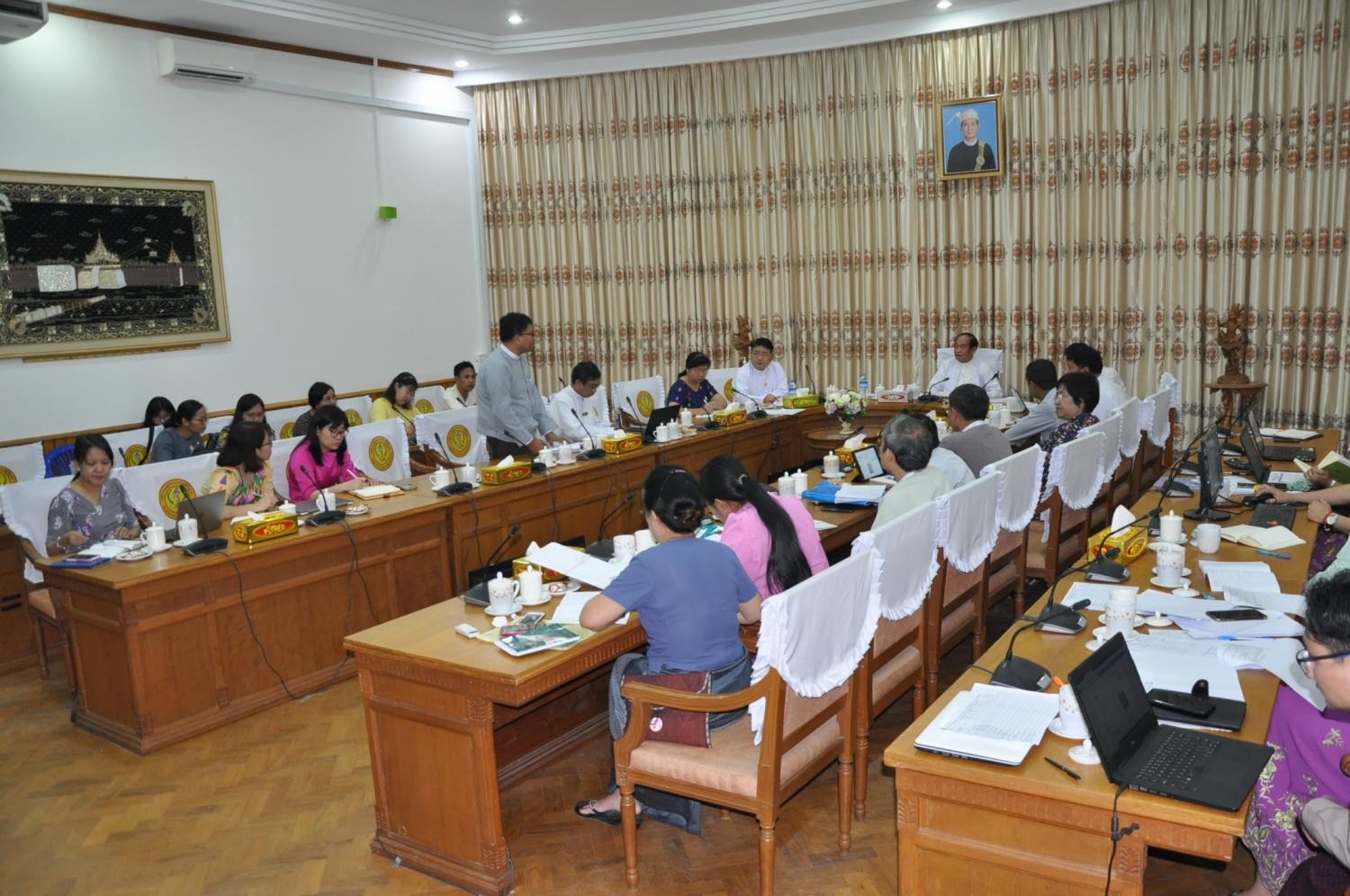 အစည်းအဝေးတွင် ကမ္ဘာ့ကျန်းမာရေးအဖွဲ့၏ COVID-19 ရောဂါနှင့်ပတ်သက်သည့် Daily Update Situation များနှင့် ထုတ်ပြန်ကြေညာချက်များ၊ အခြားနိုင်ငံများမှ ထူးခြားဖြစ်စဉ်များနှင့် သတင်းများ၊ အမေရိကန်နိုင်ငံ၊ ကိုရီးယားသမ္မတနိုင်ငံ၊ အီတလီနိုင်ငံ၊ အီရန်နိုင်ငံ တို့တွင် COVID-19 ရောဂါဖြစ်ပွားသူများ စတင်တွေ့ရှိခဲ့ပြီးနောက် မကြာခင် လျင်မြန်စွာ ဖြစ်ပွားပျံ့နှံ့မှု အပေါ်ဆန်းစစ်သုံးသပ်မှု၊ ဝန်ကြီးဌာနမှ ရောဂါစောင့်ကြပ်ကြည့်ရှုမှု လုပ်ငန်းဆောင်ရွက်နေမှုများ၊ ရောဂါကာကွယ် ထိန်းချုပ်ရေးလုပ်ငန်းများ၊ စောင့်ကြည့် လူနာများ၏ အခြေအနေများ၊ ကျန်းမာ ရေးအသိပညာပေးနှိုးဆော်မှု လုပ်ငန်းများ ဆောင်ရွက်ချက်များ၊ တိုင်းဒေသကြီး/ ပြည်နယ် အသီးသီးရှိ ဆေးရုံများ ပါမောက္ခများ၊ ဆေးပညာ အထူးကုဆရာဝန်များ၊ ကပ်ရောဂါဗေဒ ပညာရှင်များ အင်တာနက် ကွန်ရက်အသုံးပြု၍ video conferencing ပြုလုပ်၍ ကုသရေး လုပ်ငန်းများအတွင် ကြိုတင်ပြင်ဆင် ထားရှိမှုများ၊ ကုသရေးလုပ်ငန်းလမ်းညွှန်များ စသည်တို့ကို ဆွေးနွေးတိုင်ပင်ခဲ့မှု၊ ဗဟို အဆင့်တာဝန်ရှိသူများနှင့် တိုင်းဒေသကြီး/ ပြည်နယ် ပြည်သူ့ ကျန်းမာရေးဦးစီးဌာနများမှ တာဝန်ရှိသူများ video conferencing ပြုလုပ်၍ ရောဂါကာကွယ် ထိန်းချုပ်ရေးလုပ်ငန်းများအတွက် လက်တွေ့မြေပြင်တွင် အကောင်အထည်ဖော် ဆောင်ရွက် နေသည့်လုပ်ငန်းများနှင့် အားဖြည့်ဆောင်ရွက်ကိစ္စရပ်များ ဆွေးနွေးတိုင်ပင်ခဲ့မှု၊ ဆေးနှင့် ဆေးပစ္စည်းများ ဝယ်ယူမှုနှင့် လှူဒါန်းလက်ခံရရှိမှု၊ ဖြန့်ဖြူးမှုစသည်တို့ကို ဆွေးနွေးတင်ပြကြ သည်။