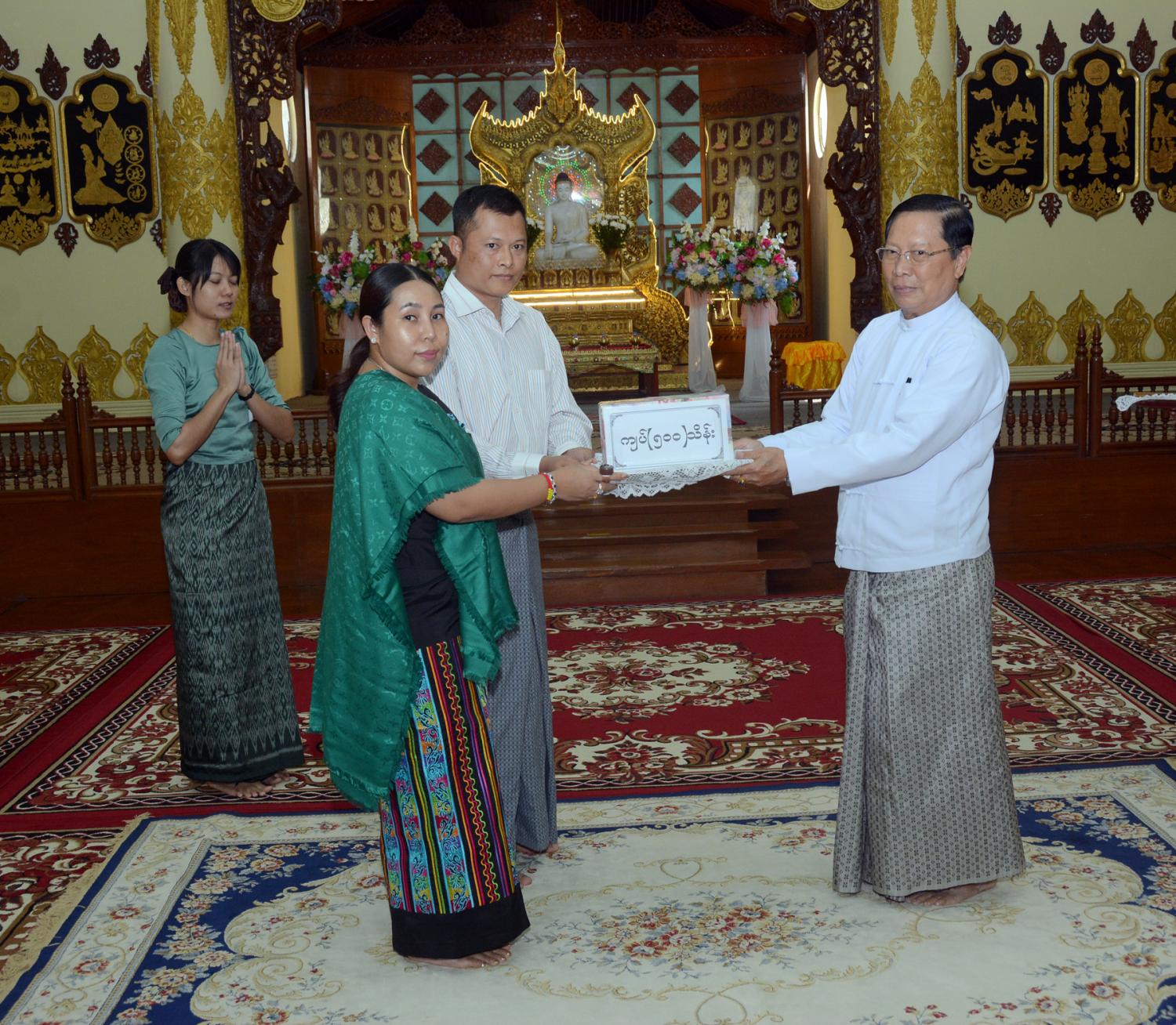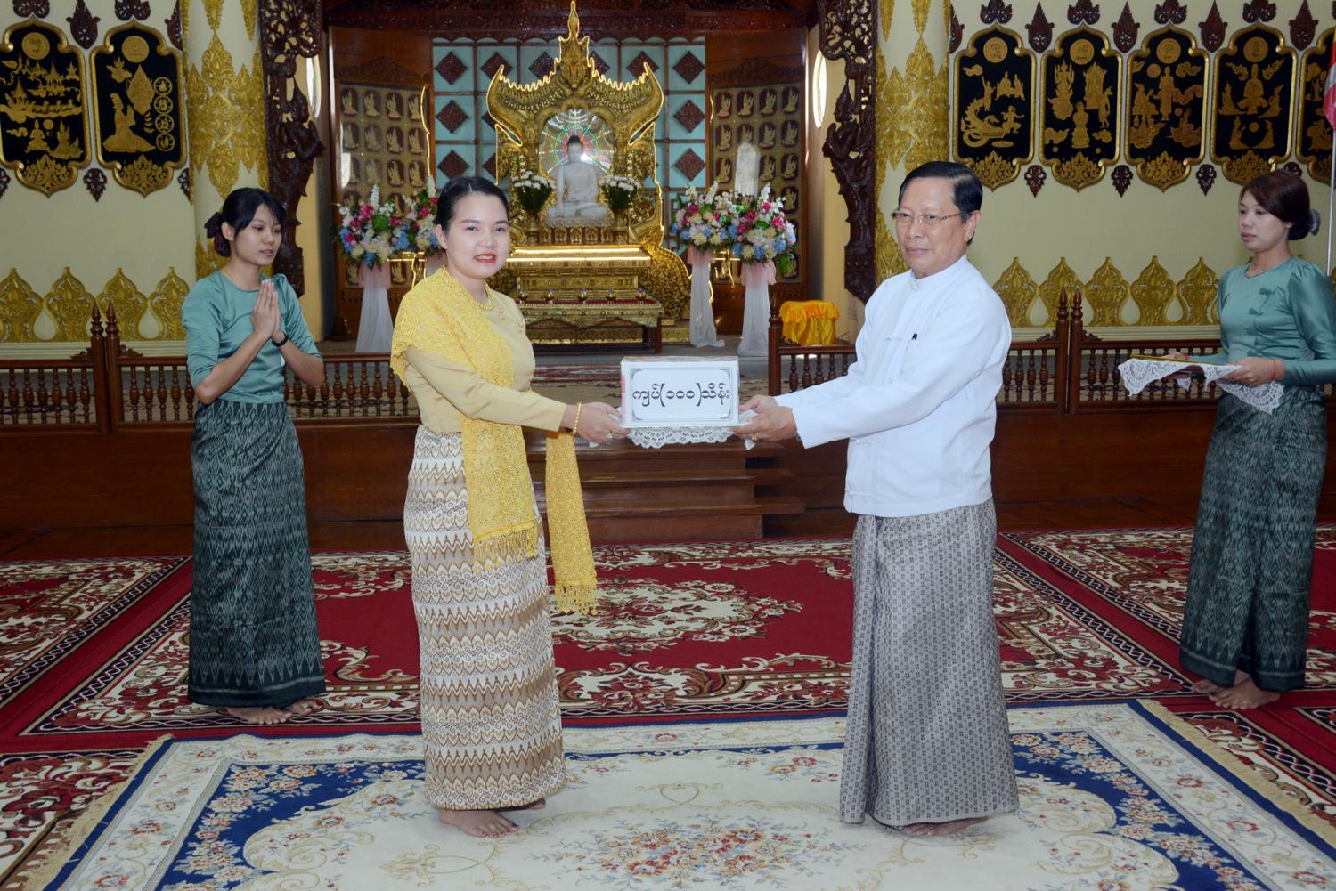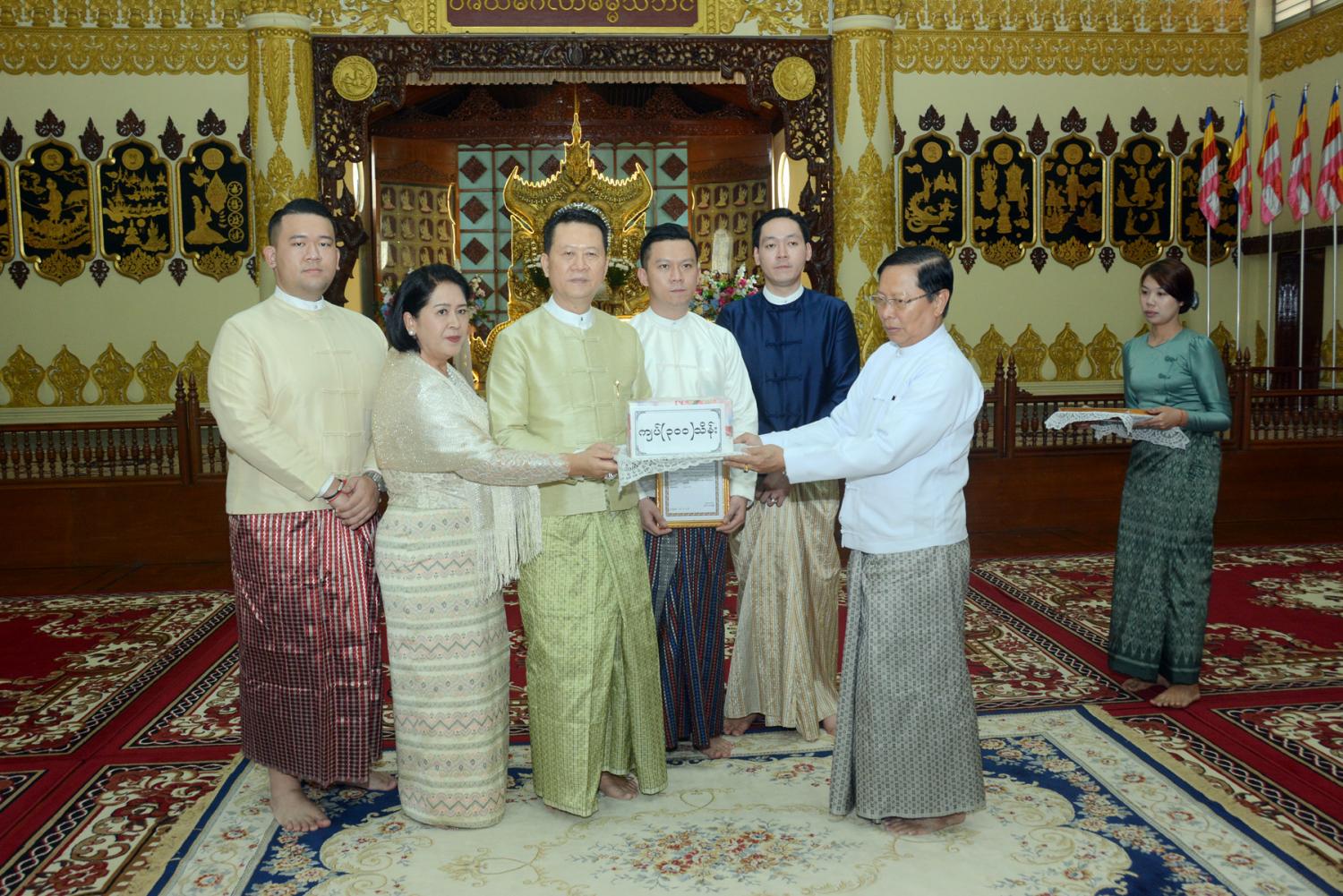 ထာဝရငြိမ်းချမ်းရေး စေတီတော် ဘက်စုံမွမ်းမံ တည်ဆောက်ရေး၊ အချောသတ်လုပ်ငန်းများ ဆောင်ရွက် ရေးနှင့် နယ်စပ်တောင်တန်း ဒေသ သာသနာပြု လုပ်ငန်းများအတွက် အလှူတော်ငွေ ပေးအပ်ပွဲကျင်းပ
