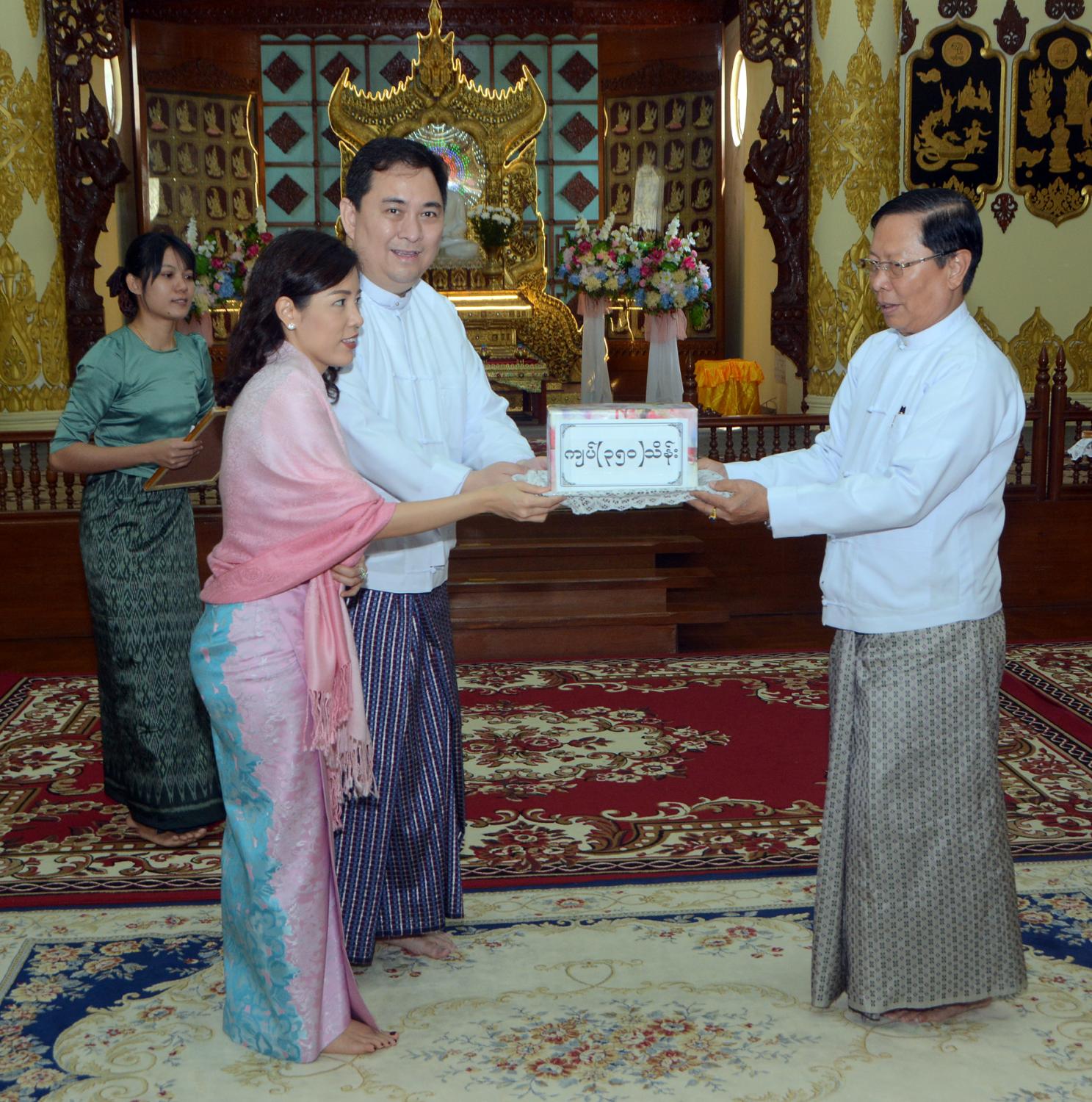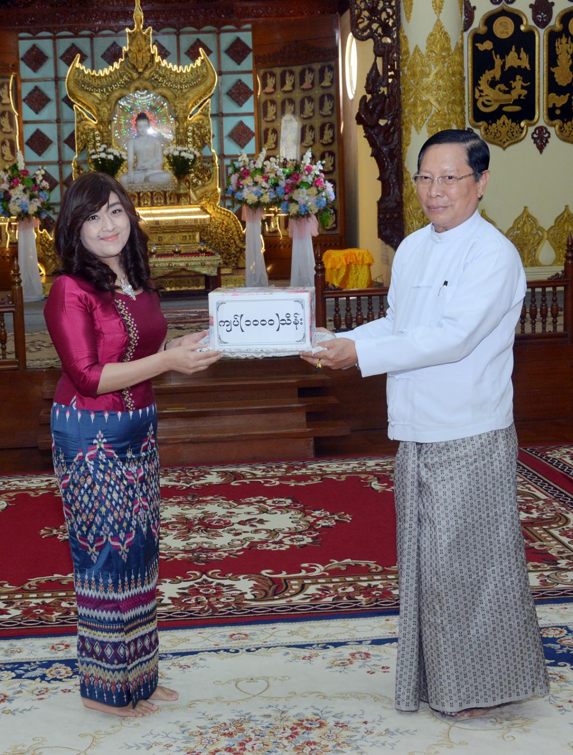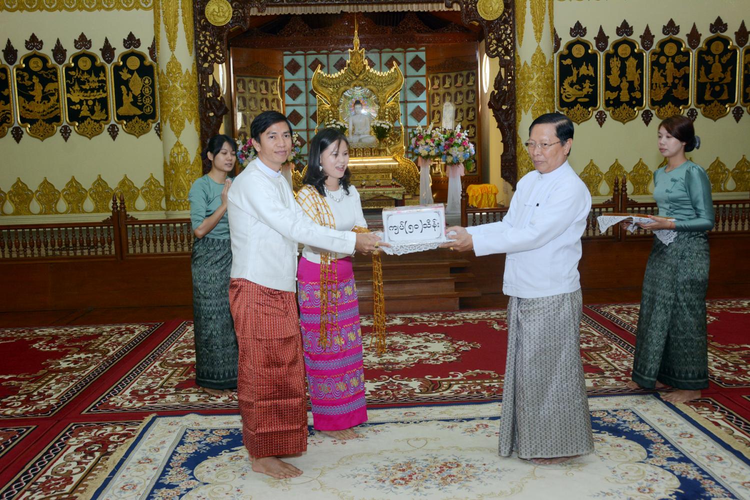 ထာဝရငြိမ်းချမ်းရေး စေတီတော် ဘက်စုံမွမ်းမံ တည်ဆောက်ရေး၊ အချောသတ်လုပ်ငန်းများ ဆောင်ရွက် ရေးနှင့် နယ်စပ်တောင်တန်း ဒေသ သာသနာပြု လုပ်ငန်းများအတွက် အလှူတော်ငွေ ပေးအပ်ပွဲကျင်းပ